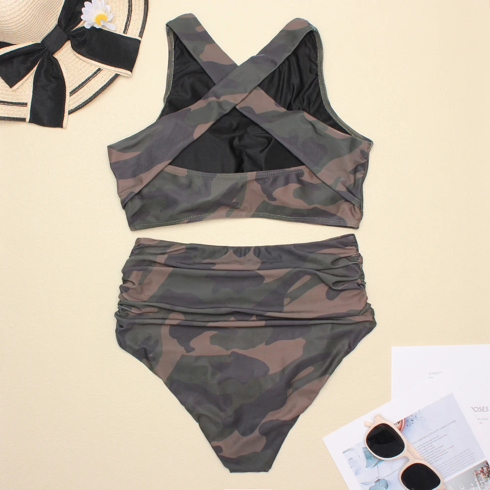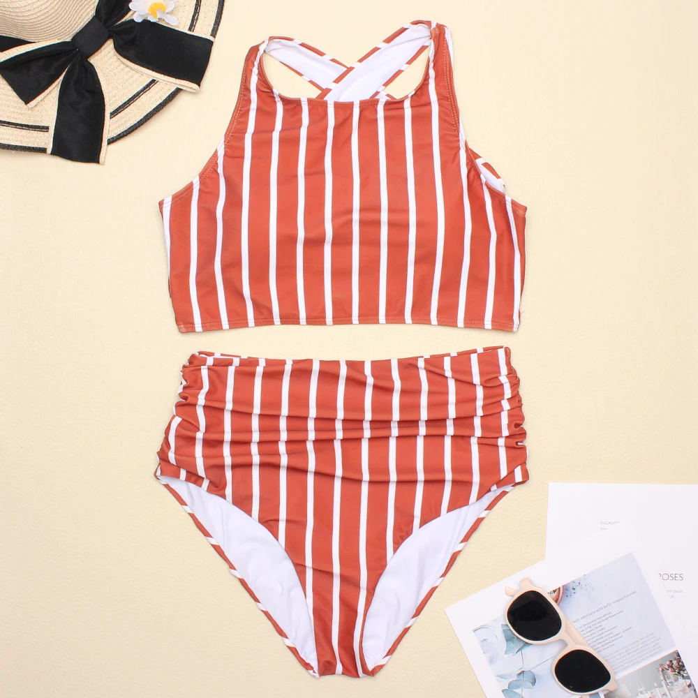 Купальник-бикини женский из двух предметов с высокой талией, размеры s-xxl