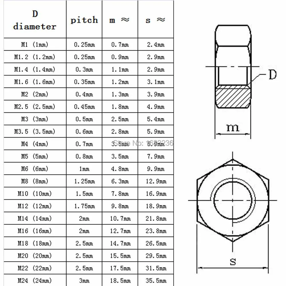 125102550100 шт. M1 M1.2 M1.4 M1.6 M2 M2.5 M3 M3.5 M4 M5 M6 M8 M10 M12 M20 M24 A2 304 Шестигранная гайка из нержавеющей стали