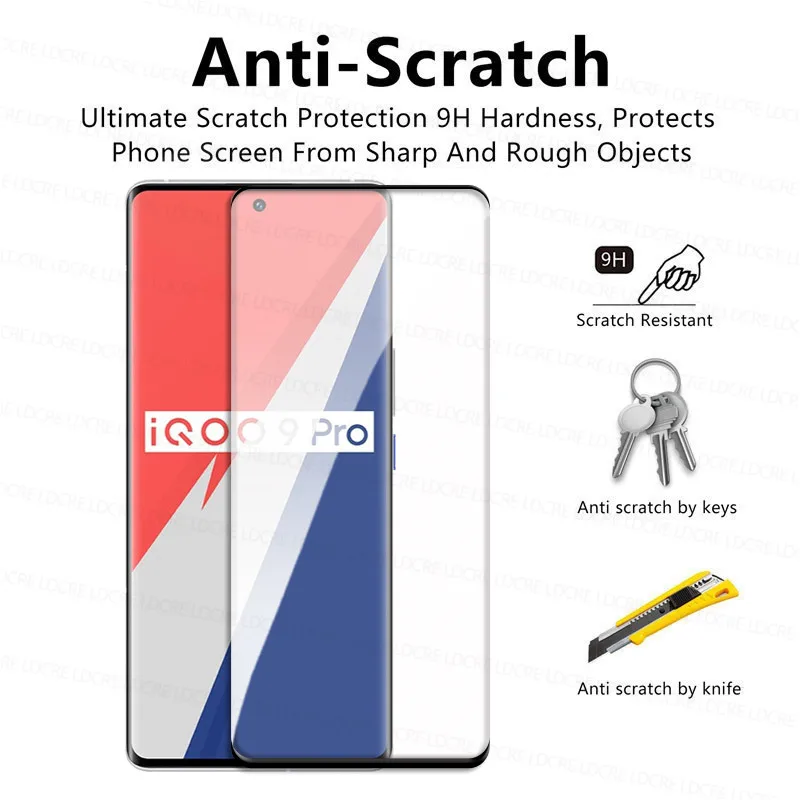 Изогнутое защитное стекло с полным покрытием для Vivo iQOO 9 Pro, Защита экрана для iQOO 9, 8, 5 Pro, закаленное стекло для iQOO 9, 8, 5 Pro, пленка для объектива