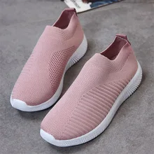 Женские кроссовки без шнуровки, сетчатые дышащие, плоская подошва, ...