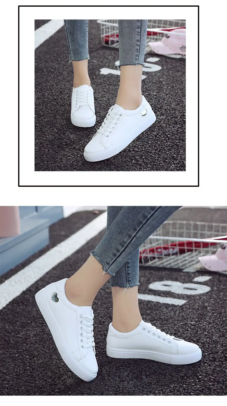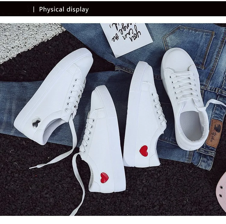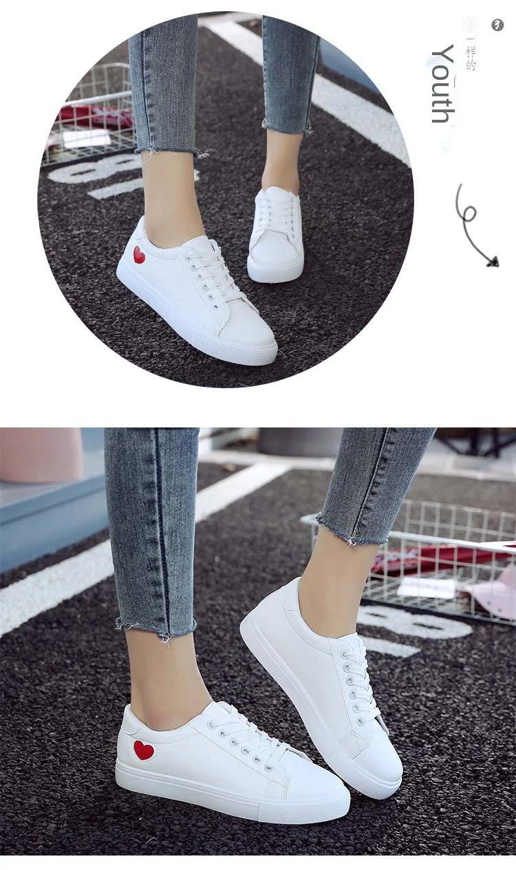 Кеды женские из ПУ кожи, дышащие кроссовки с милым сердечком, плоск...