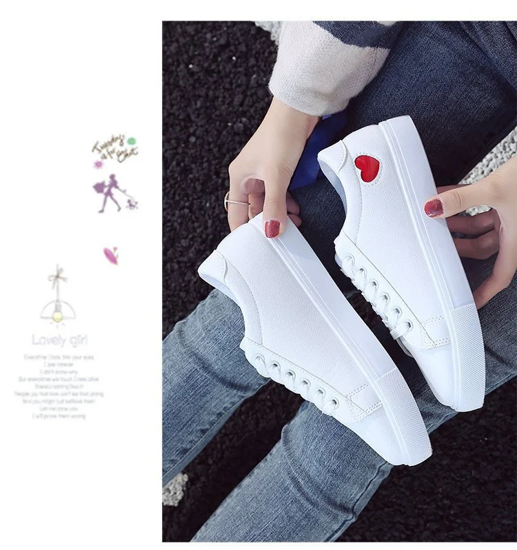 Женские кроссовки из ПУ кожи, белые дышащие кроссовки с сердечками ...