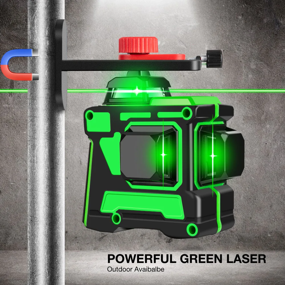 Мощный зеленый лазерный 3D уровень, 12 линий, 360 градусов, горизонтальный и вертикальный самонивелирующийся нивелир
