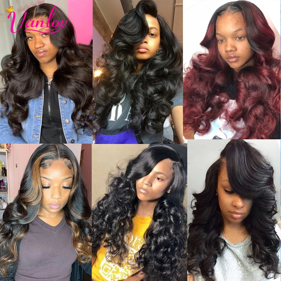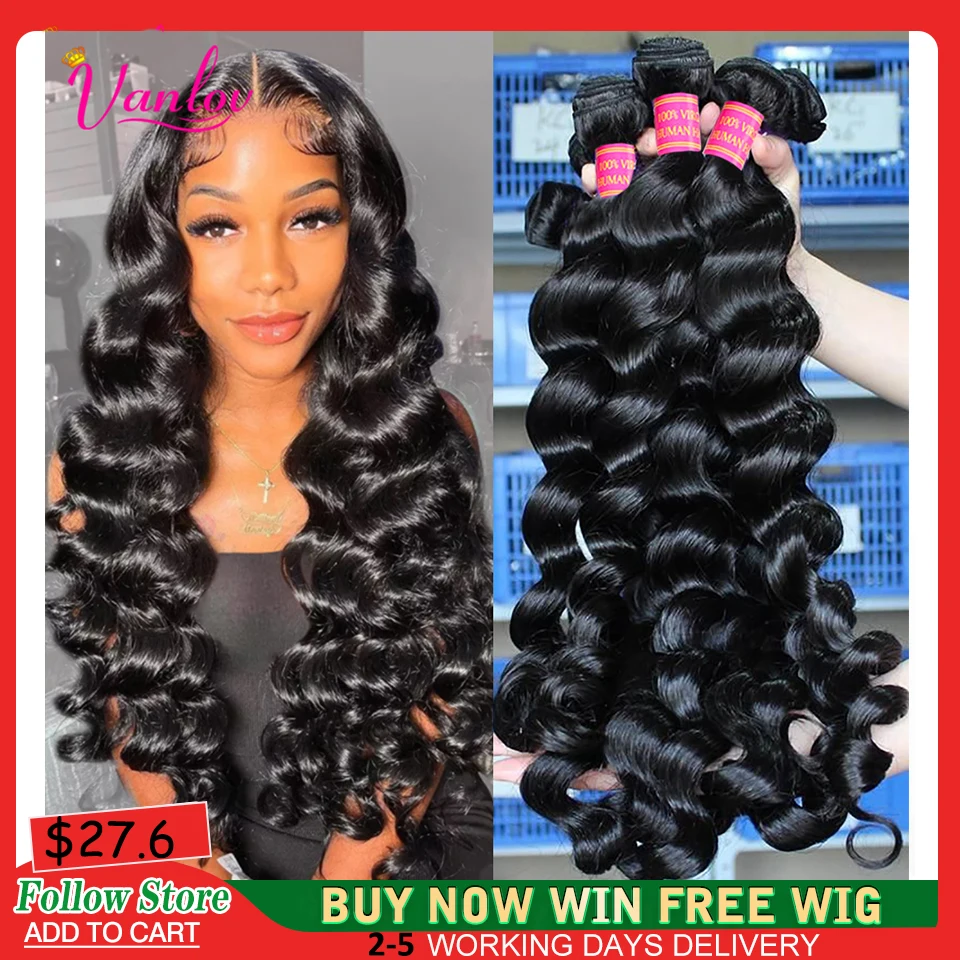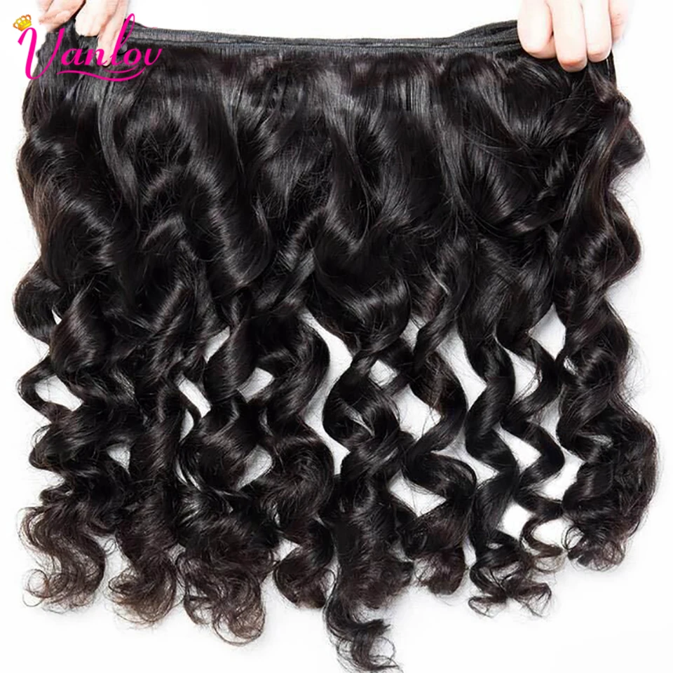 Vanlov бразильские волосы, плетеные свободные волнистые пучки, натуральные черные 134 шт.лот 100% человеческие пучки волос, неповрежденные волосы для наращивания