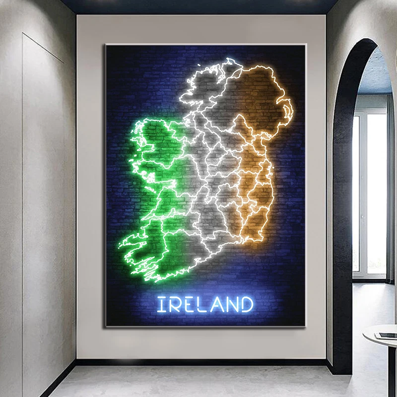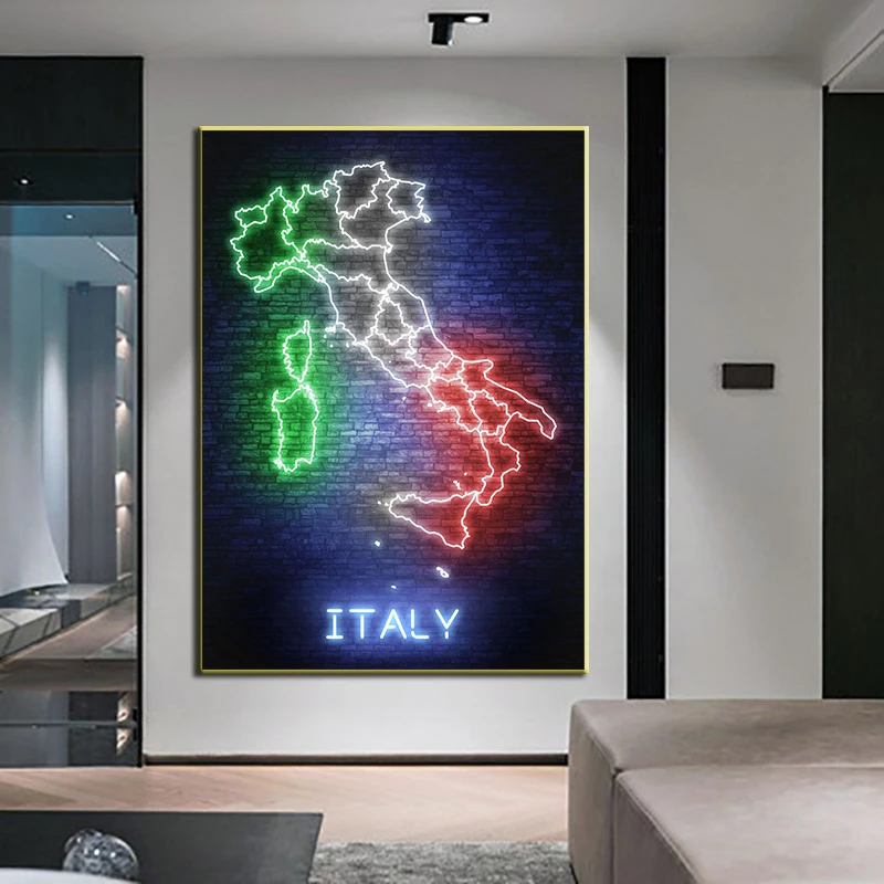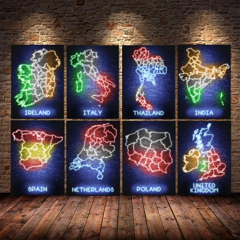 Неоновая абстрактная карта мира, холст, живопись, США, Индия, Италия, принты и плакаты, Современная гостиная, домашний декор, картина