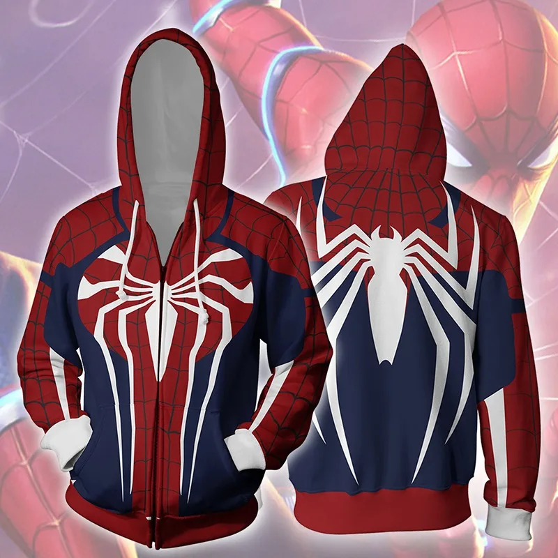 Мужская повседневная толстовка с капюшоном на молнии, с 3D-принтом Человека-паука