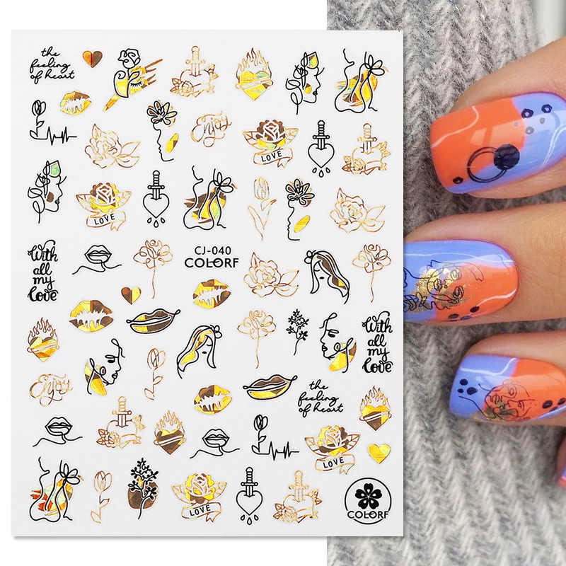 3D наклейки для ногтей в виде сердца, любви, голографический цветок...
