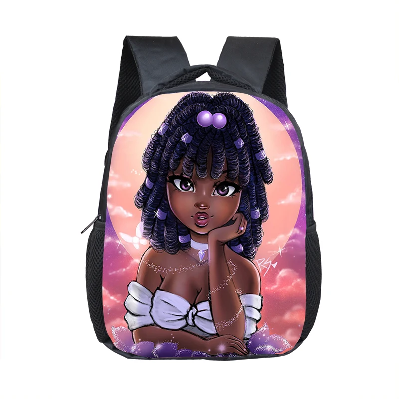 Детский рюкзак с короной для девочек, школьные ранцы черного цвета с мультипликационным изображением афро-девушек, Подарочная сумка для детского сада