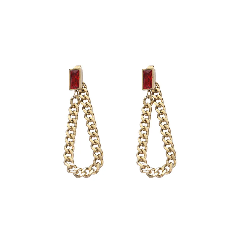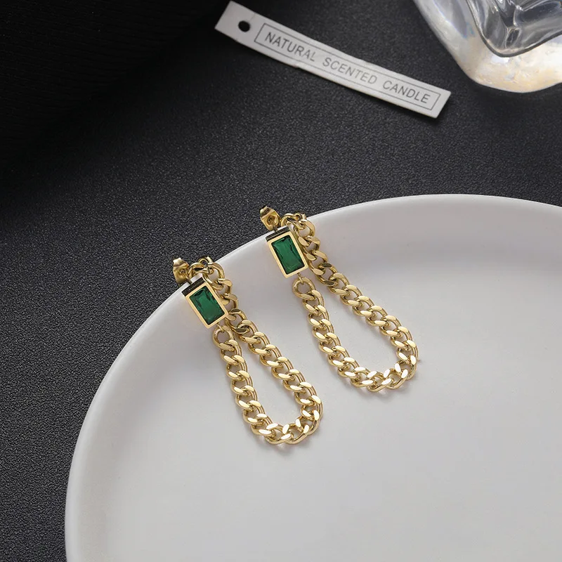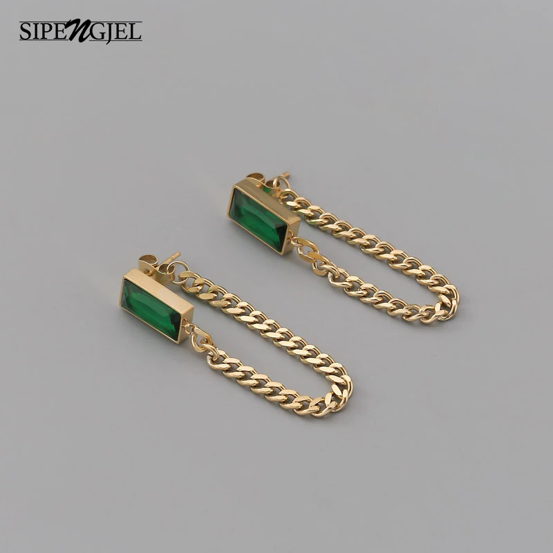 Женские серьги-цепочки SIPENGJEL, геометрические прямоугольные серьги из нержавеющей стали с зеленым кристаллом, ювелирные изделия