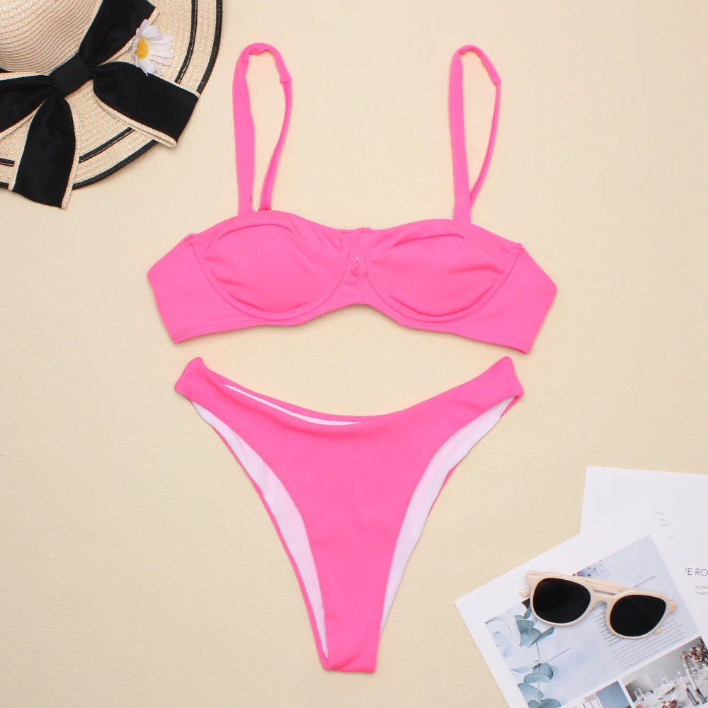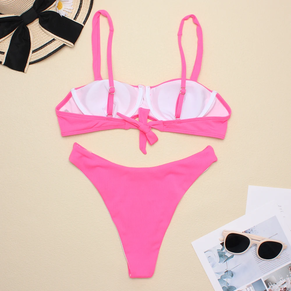 Розовый женский бразильский Монокини, однотонный купальник, сексуальный купальник с низкой талией, бикини из двух частей с открытой спиной, Женская пляжная одежда для плавания, Размеры S XXL
