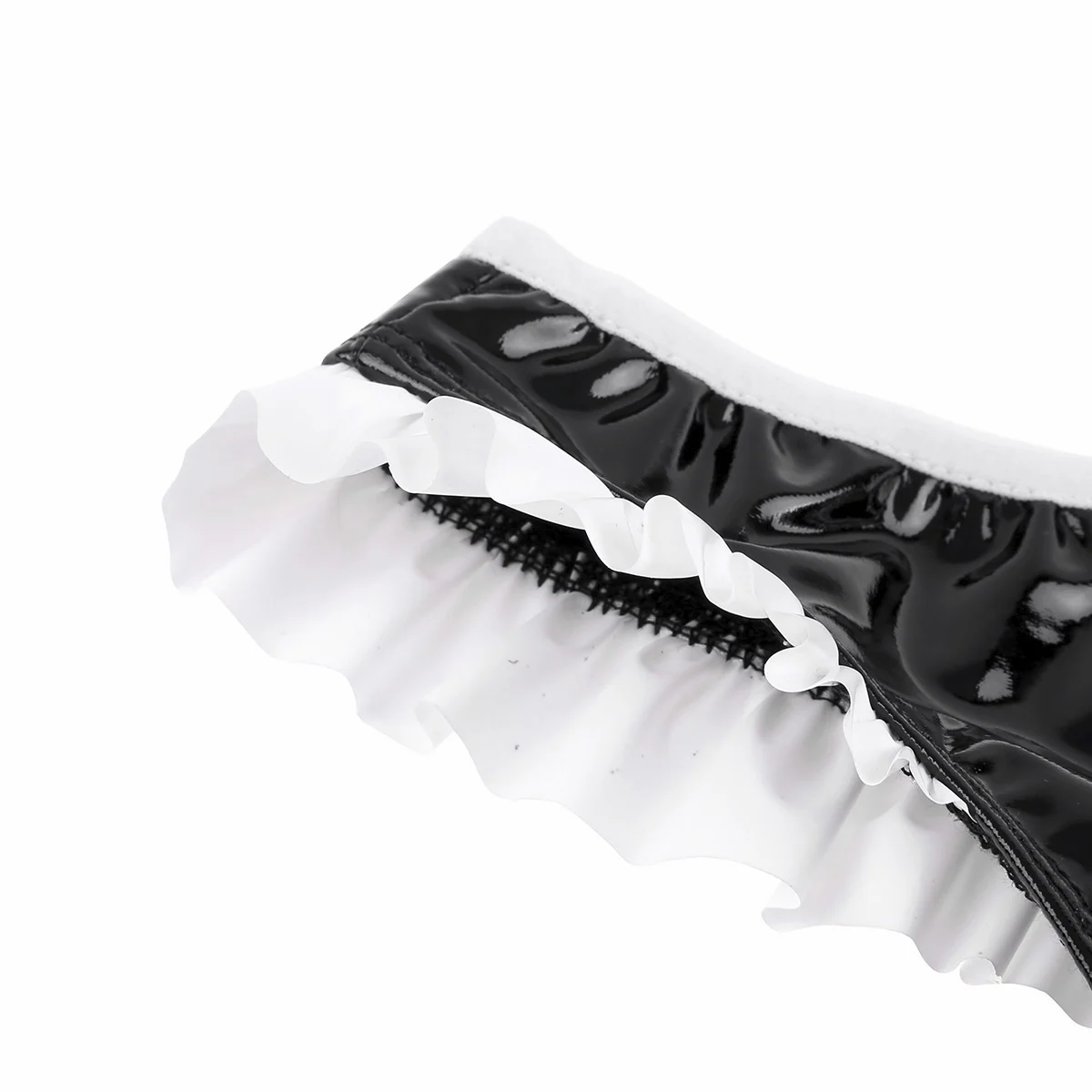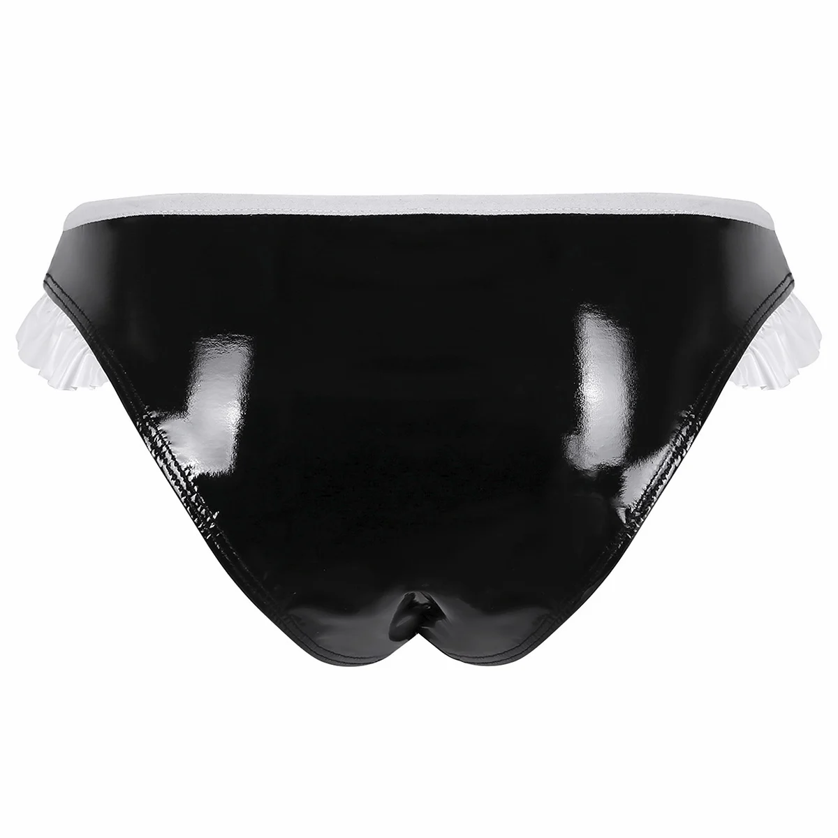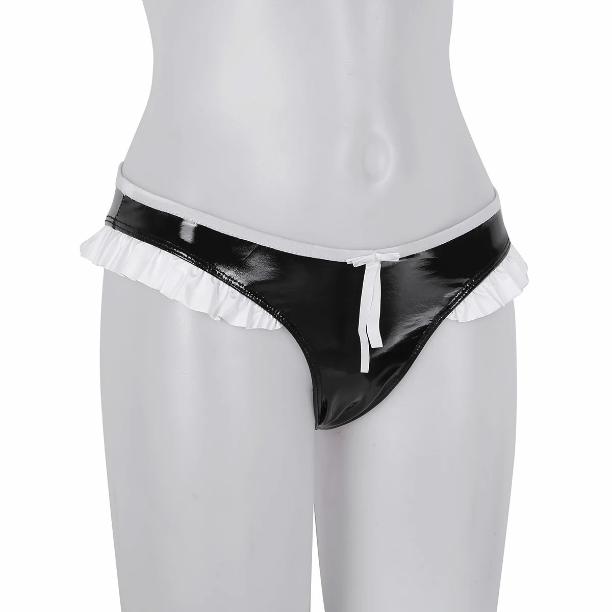Женское латексное нижнее белье, сексуальные трусики из искусственной кожи, с оборками и низкой посадкой, бикини, трусы, нижнее белье, трусики горничной для косплея