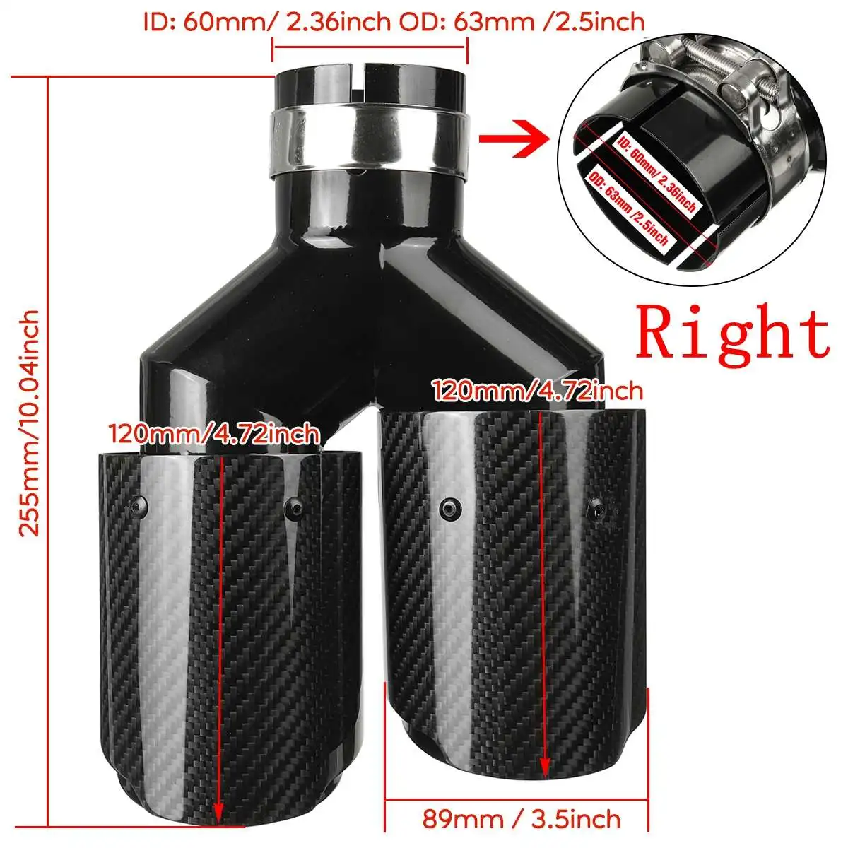 63 мм IN -89 мм из глянцевого углеродного волокна Двойные наконечники выхлопа влево/вправо для 60 мм трубы глушителяСпецификация:Модель: H42166Название продукта: выхлопная труба в стиле YМатериал: высококачественное углеродное волокно + нержавеющая стальОтделка: Глянцевое черное углеродное волокноДизайн: черное покрытиеРазмещение на транспортном средстве: Y стиль задний левый/правый(Пожалуйста, сообщите нам место установки, которое вы хотели бы. Вы можете оставить сообщение на вашей PAYPAL NOTE, чтобы сказать нам.)Входное отверстие: ID: 60 мм/2,36 дюйма OD: 63 мм/2,5 дюймовВыходное отверстие: 89 мм/3,5 дюймовОбщая ширина: 190 мм/7,48 дюймаОбщая длина: 255 мм/10,04 дюймаПодходит для выхлопной трубы диаметром 60 мм.Кол-во: 1 шт.Фитинги: подходит только для выхлопной трубы диаметром 60 мм(Пожалуйста, проверьте детали перед покупкой. Большое спасибо.)Особенности:1. Автомобильные универсальные двухконцевые трубы.2. Универсальная установка для всех выхлопных труб данного калибра.3. Прочный материал устойчив к УФ, воде, грязи, смазке, соли, легкой кислоте и маслу.4. Светильник, вес и долговечность, высокое качество нержавеющей стали.5. Простая установка, отличная посадка и превосходный материал.УстановкаРекомендуется Профессиональная установка. Приварите к запасу или aftermarket mufflers, пожалуйста, проверьте вам задний бампер/valance/diffuser для установки, корректировки могут потребоваться или замена может потребоваться, чтобы соответствовать более широким типам.Посылка включает в себя:1x выхлопная труба (слева/справа по желанию)Примечание:1. Мы предоставляем четкие изображения, измерения, где это возможно. Пожалуйста, проверьте как можно больше, чтобы убедиться, что товар тот, который вам нужен.2. Прежде чем сделать заказ, пожалуйста, измерьте выхлопную трубу и задний бампер/балдахин/диффузор, чтобы убедиться, что эти наконечники подходят для вашего автомобиля.3. Инструкция не входит в посылка. Настоятельно рекомендуется Профессиональная установка.
