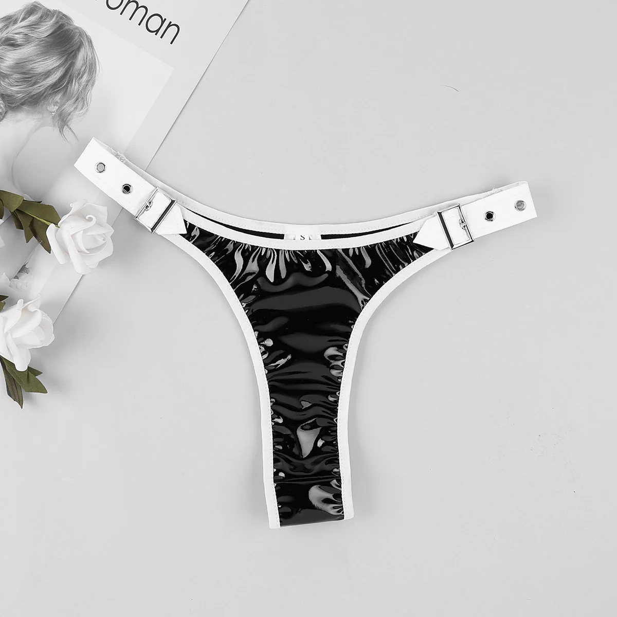 Эротическое нижнее белье, женские Трусики-бикини из искусственной кожи с регулируемой талией и застежкой, стринги с низкой посадкой, сексуальное женское нижнее белье
