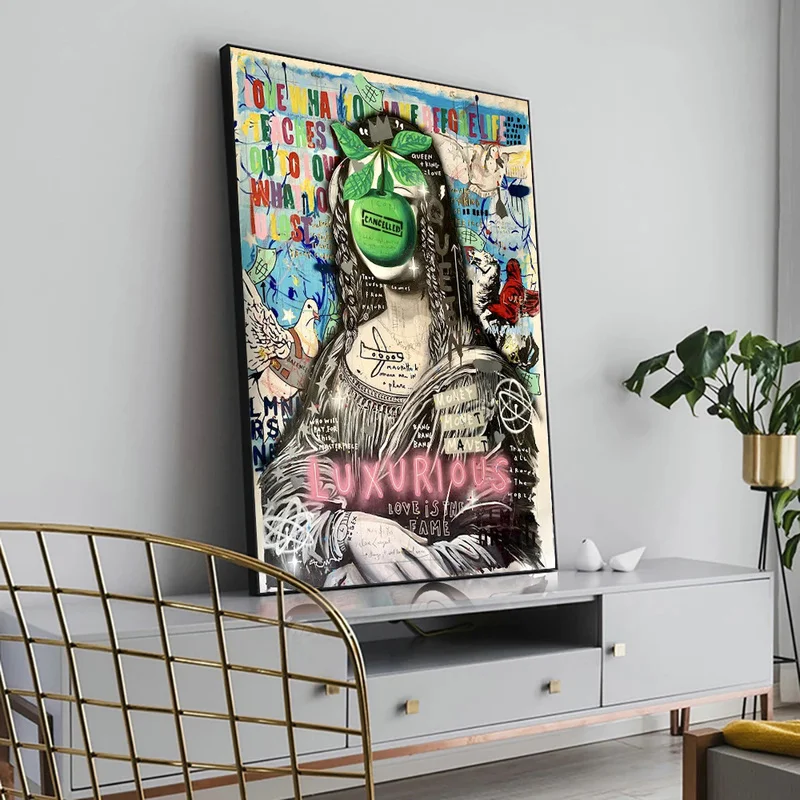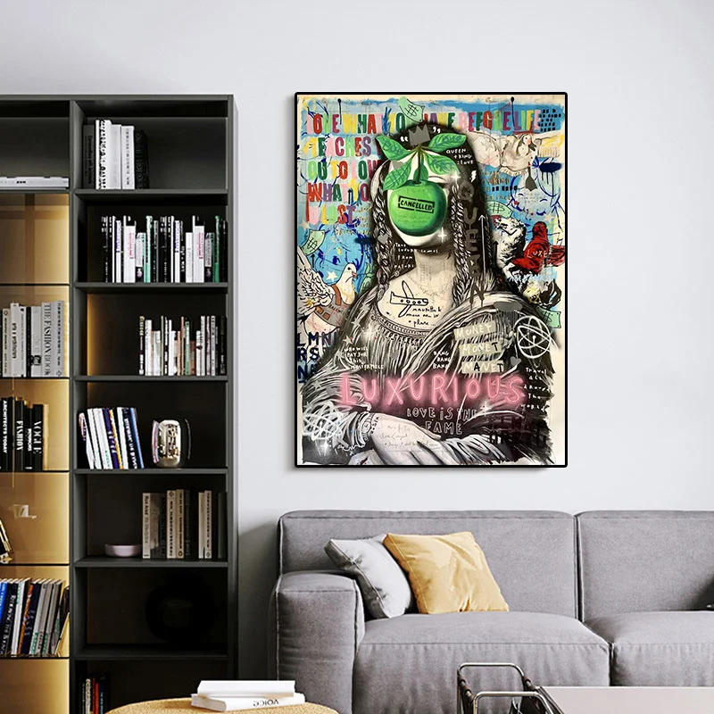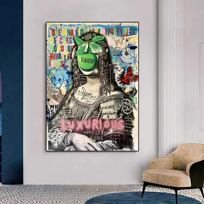 Роскошные холщовые постеры и принты с изображением яблока Моны Лизы королевы граффити настенная живопись уличные художественные картины для декора гостиной