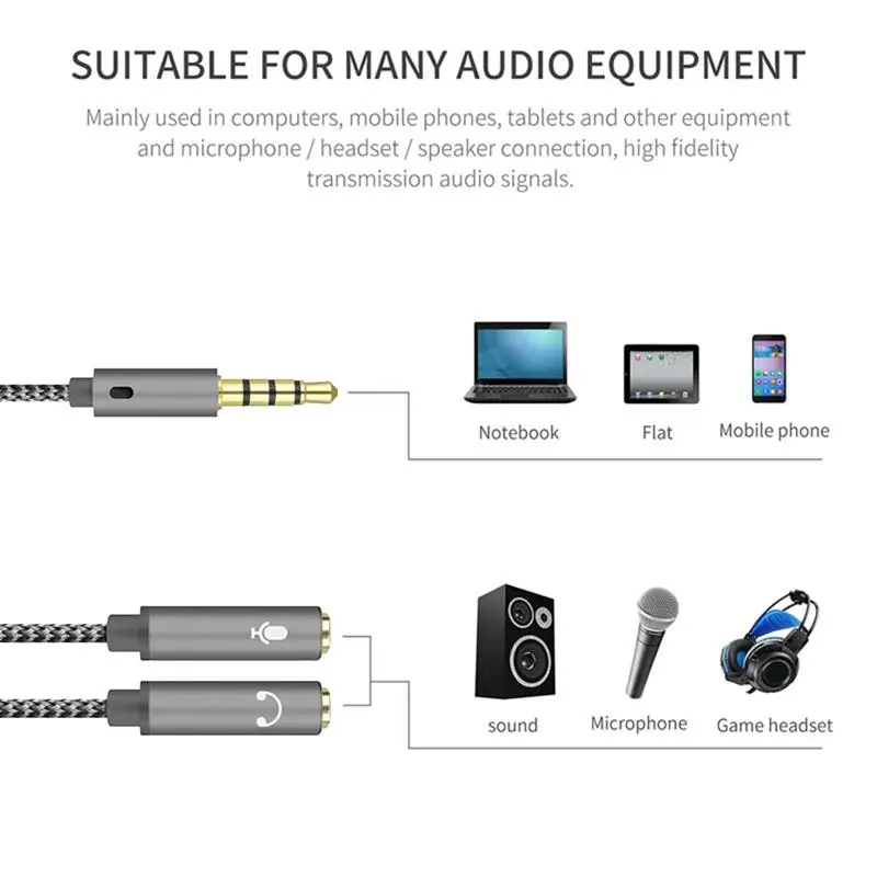 Точка пули:<;br/>1. Используется для мобильный телефон или компьютер устройства вывода звука, 3,5 женский аудио для аудио вход (без микрофона), одна для вывода звука (наушники).<;br/>2. Подходит для ноутбуков, планшетов, смартфонов, macbooks и т. д. <;br/>3. Простой линейный звуковой дизайн, стильный и красивый.<;br/>4. Маленький и портативный, возьмите с собой, простой в использовании <;br/>5. Бескислородный медный провод для достижения высокого качества звука. Не запутывается и не завязывается, мягкий и не боится сгибания.<;br/> характеристики: <;br/> Материал: PCV + weave<;br/> Сердечник провода: 4 ядра 10,08x8<;br/> диаметр провода: 3,0 <;br/> Интерфейс: 3,5 мм <;br/> Вес: 10 г <;br/> Длина: 25 см <;br/> Цвет: серебристо-серый/черный <;br/> посылка включает в себя: <;br/>1*3,5 мм аудиокабель <;br/> Добавить в список желаний <;br/>1*3,5 мм аудиокабель