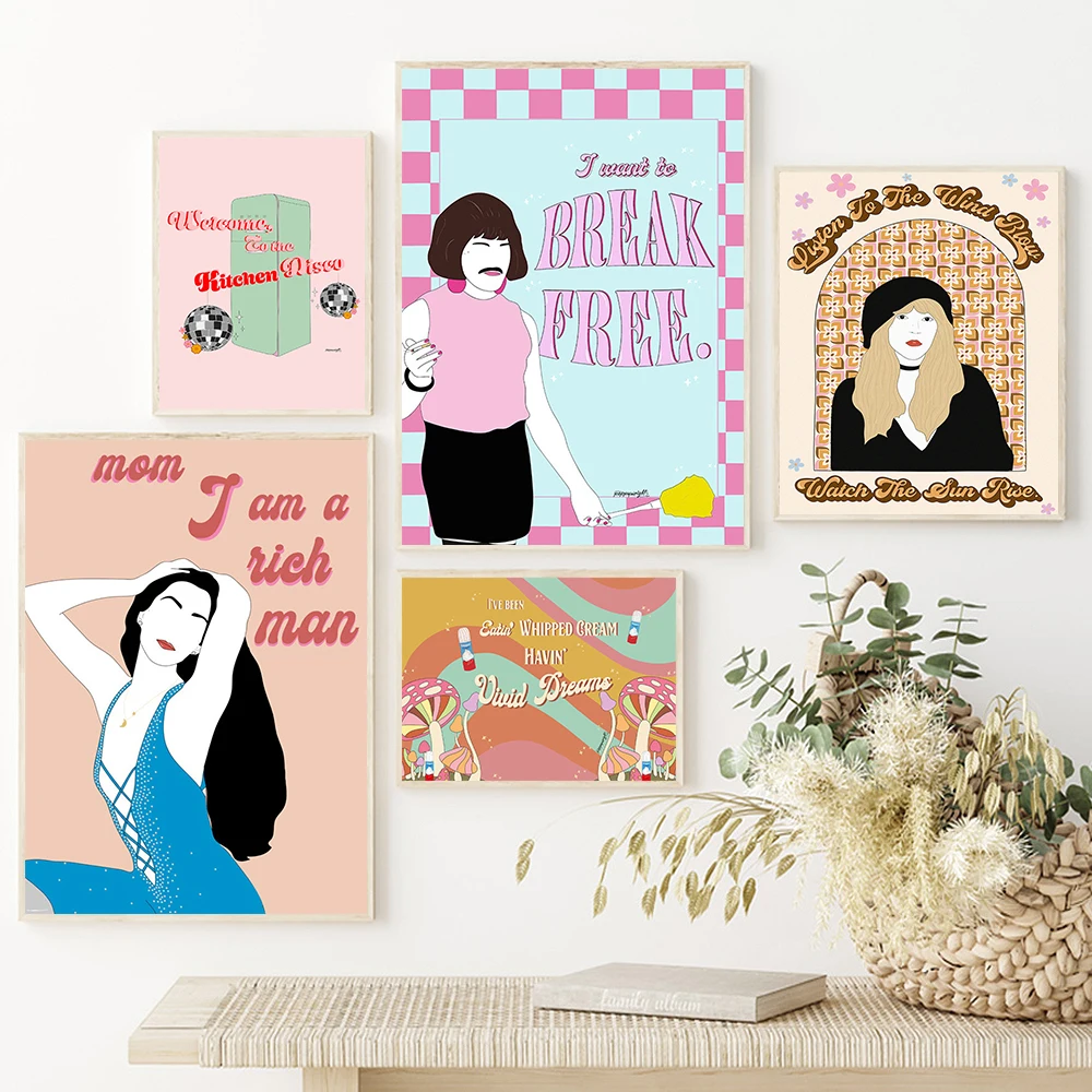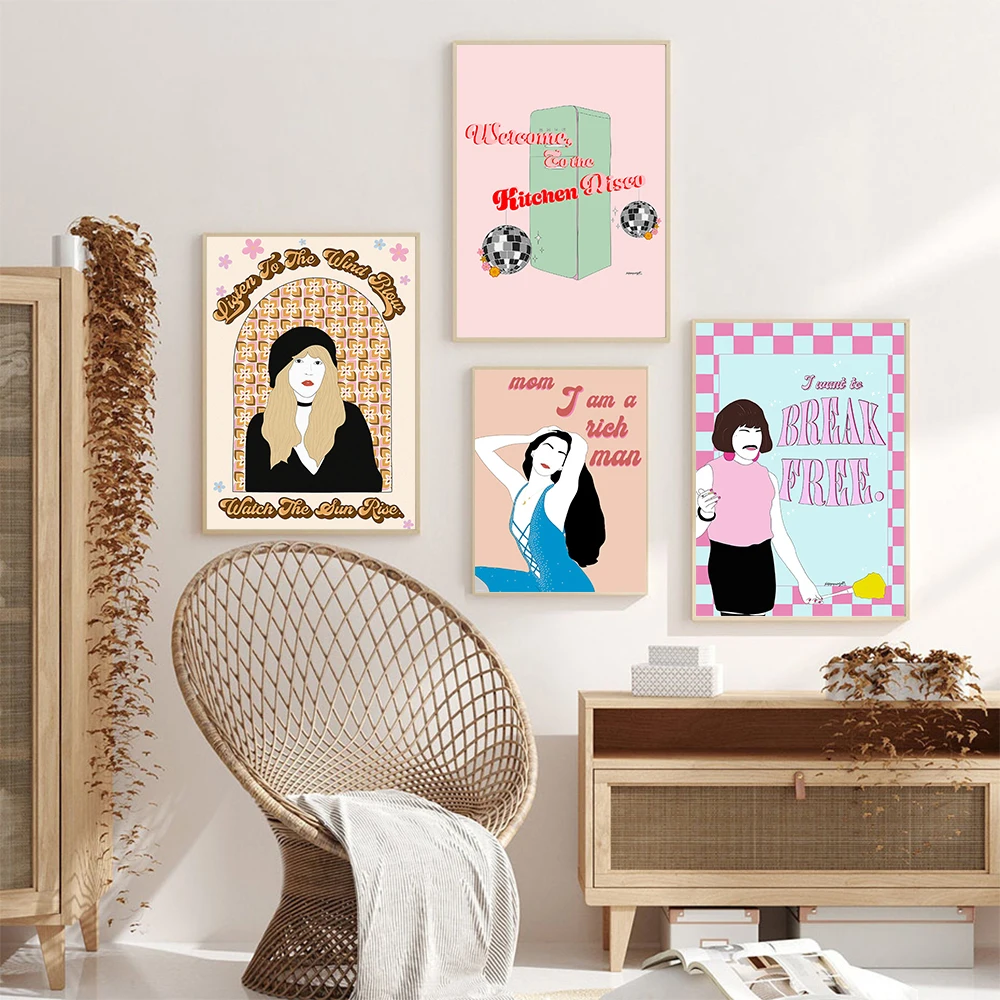 Веселый женский плакат с принтом феминизма, королева, настенное искусство, мама, я богатый человек, кухня, диско, фреска, Декор для дома