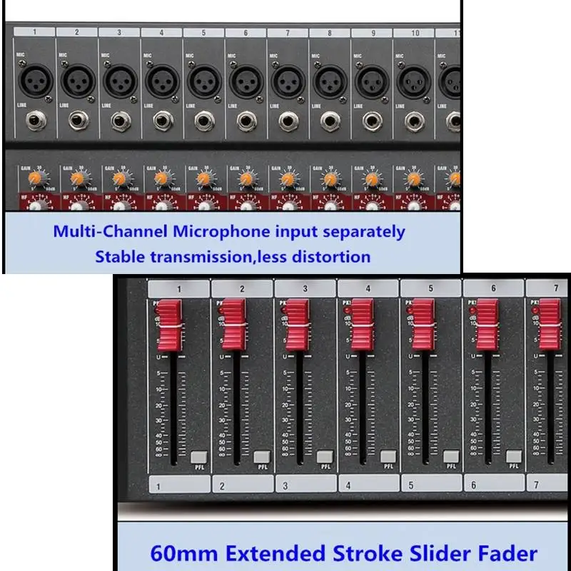 Технические характеристикиМаксимальный входной уровень микрофона: + 24dBuМаксимальный уровень входного сигнала: + 24dBuМаксимальный выходной уровень: XLR карта + 26dBuОсновной измеритель уровня: 10-сегментный светодиодный-24dB для зажимаЧастотная характеристика: 20 Гц-30 кГц ± 0,5 дБМаксимальная входная мощность: 15 ВтПолное искажение рубки (RHD + N): <0.01%Перекрестие (1 кГц): Фейдер Выкл> 85 дБ канал> 82дбШум (22 Гц-22 кГц): эквивалентный входной шум-122dBu оставшийся Выходной шум <-90dBuМоно/стерео канальный эквалайзер: высокая частота +/-15 дБ, 12 кГц низкая частота +/-15 дБ, 80 кГц Высокая IF +/-15 дБ, 2,5 кГц2-трек возврата: RCA лотосы, сбалансирована, 4K ohm-2dBu2-track передачи: RCA лотосы, сбалансирована, <75 Ом, -2dBuВыход L/R: XLR, сбалансированный, Горячий Конец наконечника, <75 Ом, + 4dBu, max + 22dBuFX/AUX Выход: TRS, несбалансированный, наконечник горячего конца, <75 Ом, -2dBu, Макс + 18dBuНаушники: TRS, Tip L, Ring R, рекомендуемые наушники от 30 до 600 ОмРазмер: 516 мм * 340 мм * 37 мм