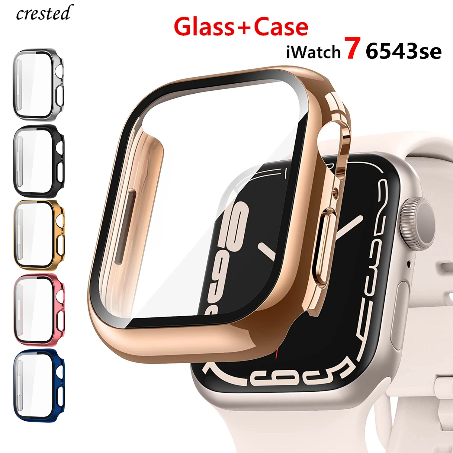 Стекло и крышка для Apple Watch, чехол 44 мм 40 мм 45 мм 41 мм 42 мм 38 мм, аксессуары с покрытием для защиты экрана iWatch series 6 5 4 3 se 7