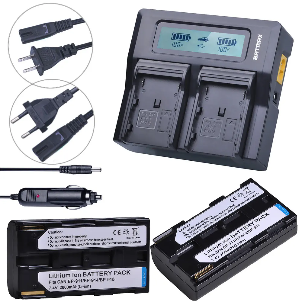 Batmax 2600mAh BP-911 BP-914 BP-915 батарея + LCD быстрое двойное зарядное устройство для Canon FV500/MV200/C2/DM-MV1/E2/E30/UC-V20/UC-V30/V72
