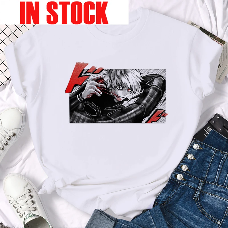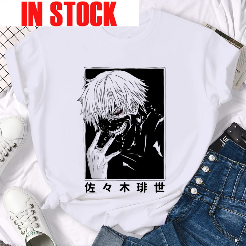 Футболки женские с аниме канеки Кен Токийский Гуль Мужская футболка Харадзюку футболка оверсайз женская готическая с коротким рукавом черная футболка с принтом