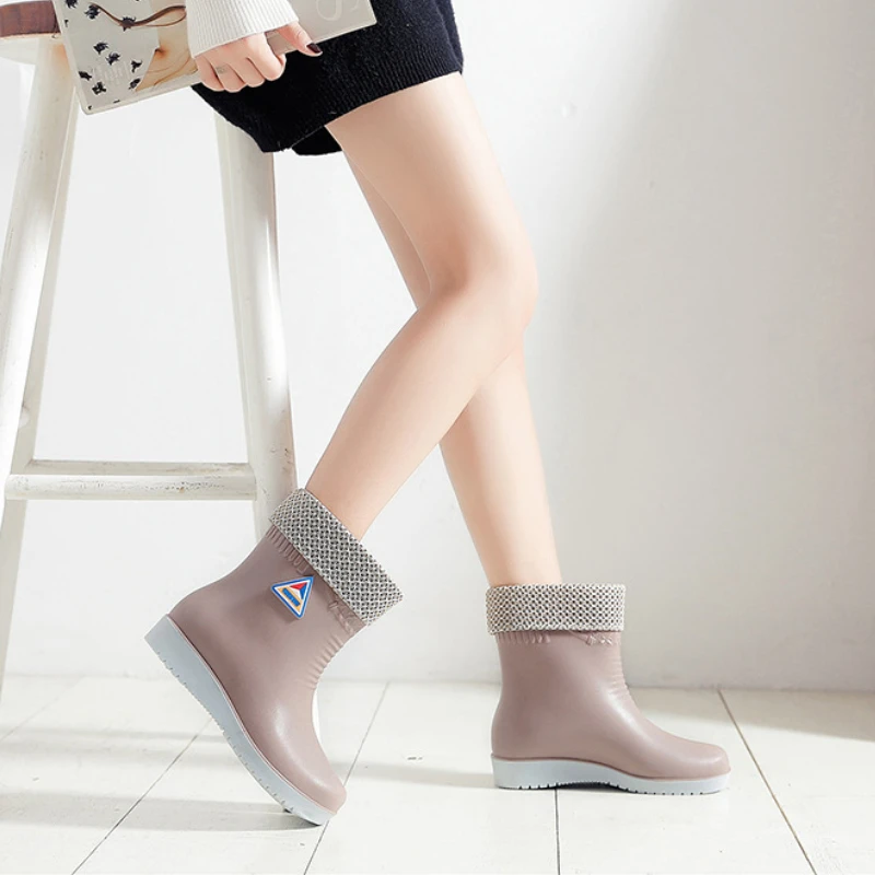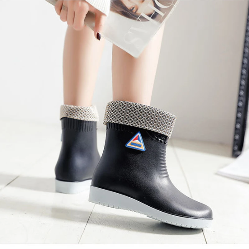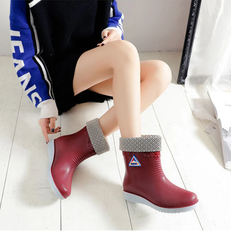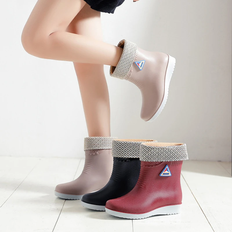Зимние резиновые сапоги, женские модные резиновые сапоги, водонепроницаемые рабочие теплые хлопковые короткие сапоги, женские уличные садовые Нескользящие сапоги