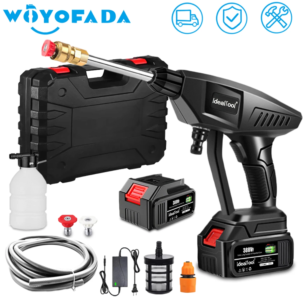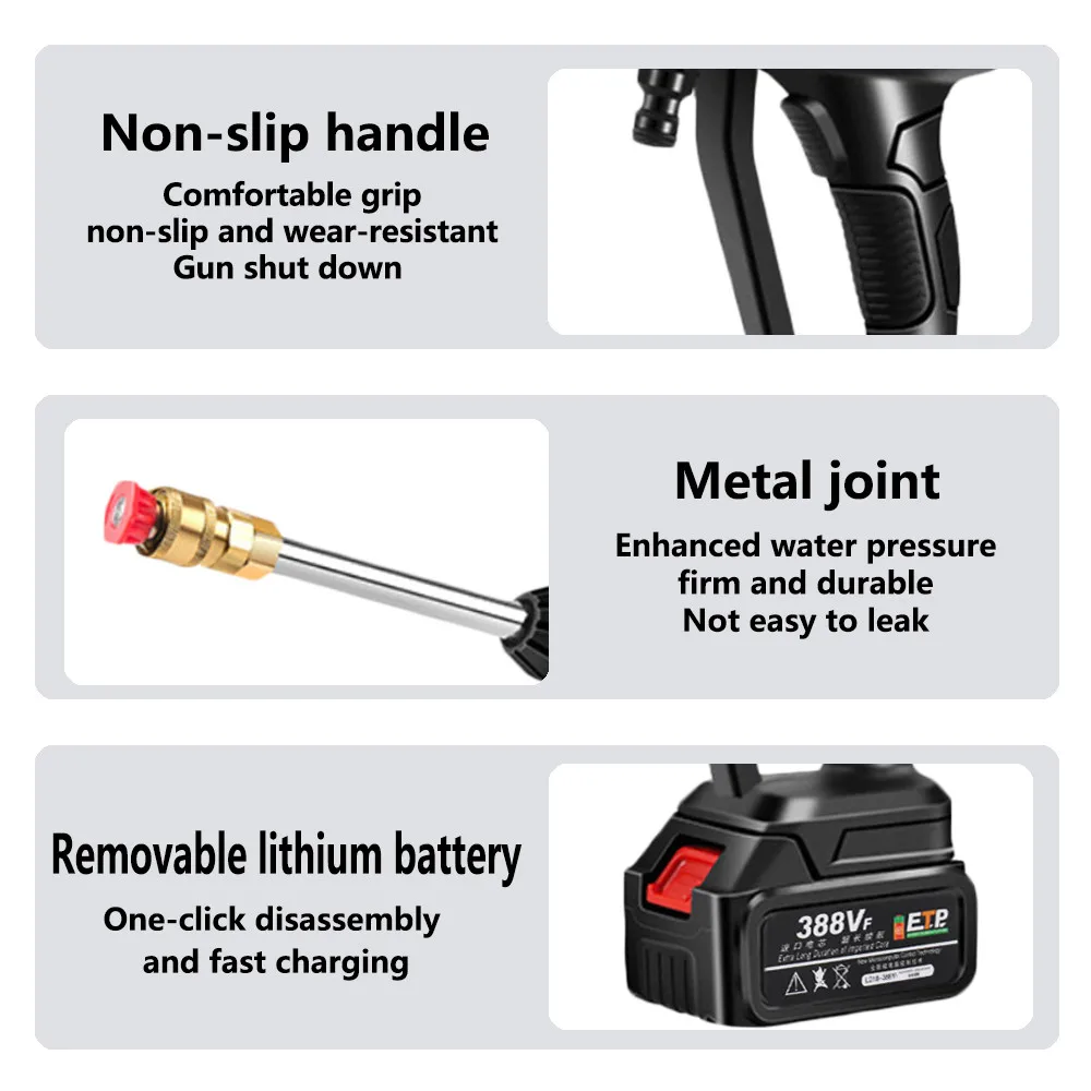 Примечание:Если водяной пистолет может работать и Водопровод был запечатан, но водяной пистолет по-прежнему не может прокачивать воду, Это вызвано тем, что водяной насос в водяном пистолете был слишком сухим. Пожалуйста, следуйте видео операции в ссылке ниже, чтобы заполнить водяной насос с водой. Проблемы могут быть решены этим методом.Https://www.aliexpress.com/item/1005003555918882.htmlОбязательно проверьте правильность номера телефона, чтобы наш поставщик логистики мог связаться с вамиПри размещении заказа, пожалуйста, укажите номер дома как можно больше в адресе получателя.ПримечаниеКлиенты в Южной Корее, пожалуйста, обратите внимание на личный номер таможенного оформления при размещении заказа, чтобы мы могли плавно организовать доставку.Машина адаптирована для 18В батареи Makita√ Совместим с литиевой батареей серии 18 в B, такими как BL1850B(197285-8),BL1840B(197270-1),BL1830B(197602-2),BL1430B(197618-7),BL1820B(197487-6);√ Совместимость с BL1850,BL1840,BL1440(196391-6),BL1415(194560-3),BL1815N(196781-3);× Не подходит для аккумуляторов серии G, таких как BL1813G(196663-9) BL1413G(196882-7) BL1415G BL1430G BL1815G и так далее× Не совместимы для 18v Ni-CD батареи, такие как 1822(194465-7)Есть несколько версий наших пенопластовых бутылок, которые отправляются случайным образом и не влияют на использование.Особенности:● Мощный полностью Медный двигатель, автоматическое выключение и старт-стоп.● Портативный самовсасывающий, более быстрый и прочный, встроенный фильтр из нержавеющей стали, Высокоэффективная и глубокая фильтрация примесей в воде.● Водяной пистолет может переключать тип воды по желанию, и поток воды может регулироваться постепенно от малого до большого путем замены сопла, И вентилятор и Прямая регулировка водной линии могут быть переключены по желанию.● Мощный Срок службы батареи, литиевая батарея значительно продлевает срок службы машины● Интеллектуальный индукционный двигатель с переменной частотой, двигатель с распылителем воды автоматически запускается, останавливает двигатель с распылителем воды автоматически останавливается.● Его можно использовать в качестве моющего пистолета для воды, садовых оросительных инструментов.● Идеально подходит для полива сада, орошения в сельском хозяйстве, мытья автомобилей, уборки дома и т. д.● Универсальная Батарейная розетка, используется универсальная Батарейная розетка, что делает его более удобным для покупки запасных батарей. Если вам нужно купить батареи, пожалуйста, свяжитесь со службой поддержки клиентов и подтвердите перед покупкой.Характеристики:Цвет: черныйМатериал: АБС-пластик и медьНапряжение: 18-21 вМощность: 200 ВтДавление Продукта: 30 барЗарядное устройство Напряжение: AC 100-240V 50/60HzДлина водопровода: 5 метровДиапазон: 2-3 метраНебольшая емкость аккумулятора: 5*1500 мАчБольшая Емкость аккумулятора: аккумулятор 10*1500 мАчQ & AВ1: почему машинная стиральная машина не запускается после включения выключателяA1: возможно, аккумулятор не работает, пожалуйста, заряжайтеВ2: почему нет воды после включения стиральной машиныA2: обратите внимание, согнута ли водопроводная труба, и вода не может быть выпущена; Нажмите на мойку автомобиля более десяти секунд и подождите, пока вода будет всасываться в мойку автомобиляВ3: почему давление воды настолько малоеA3: размер давления воды имеет определенную связь с соплом, вы можете выбрать, чтобы заменить сопло; Когда батарея используется, давлени