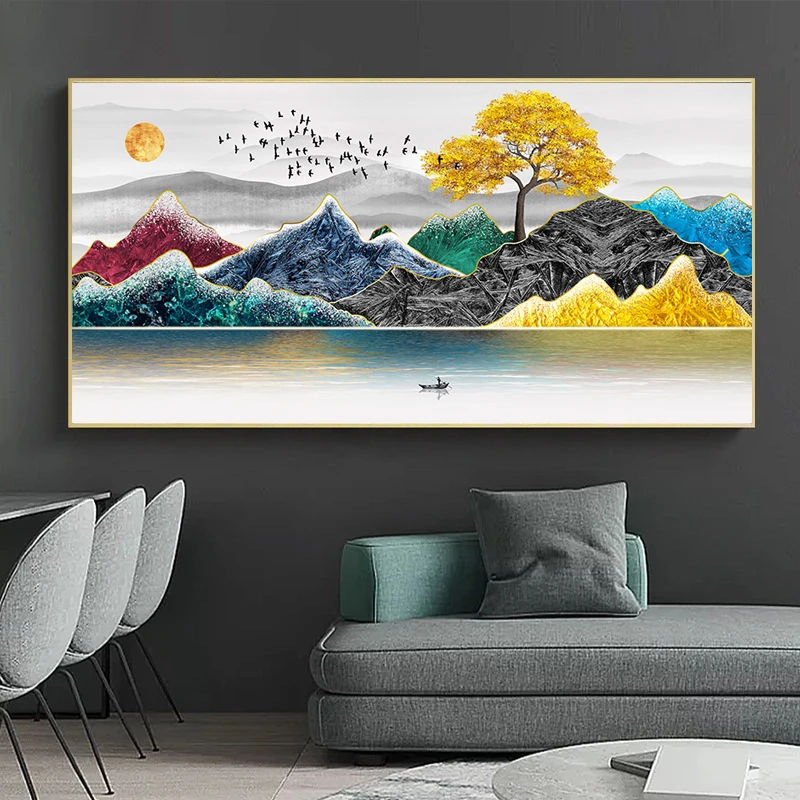 Северное абстрактное золотое дерево птицы горный холст картина настенные художественные плакаты печать, Картина Настенная для гостиной домашний декор