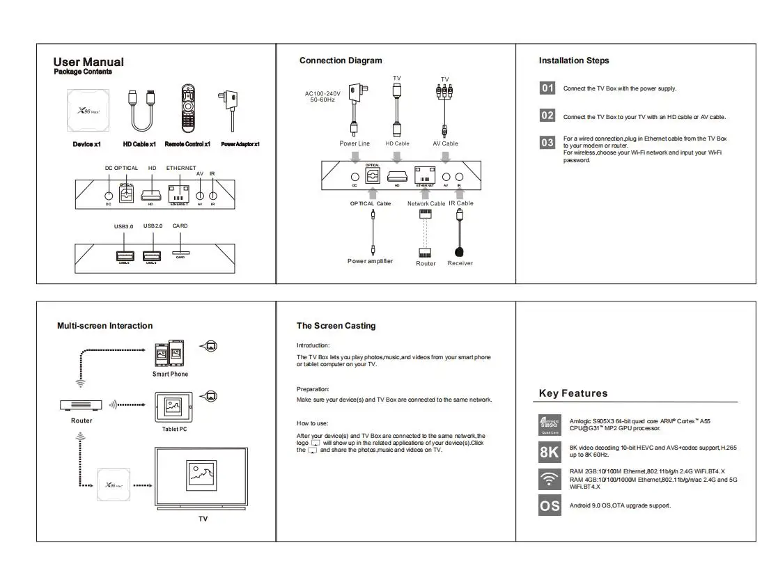 Процессор: Amlogic S905X3 64-разрядным четырёхъядерным ARM®Кортекс™A55