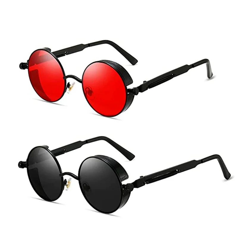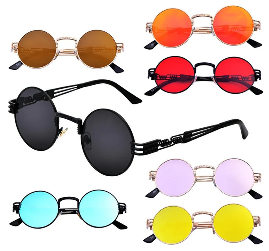 Солнцезащитные очки в стиле стимпанк UV400 для мужчин и женщин, готические цветные линзы в круглой металлической оправе, в стиле ретро