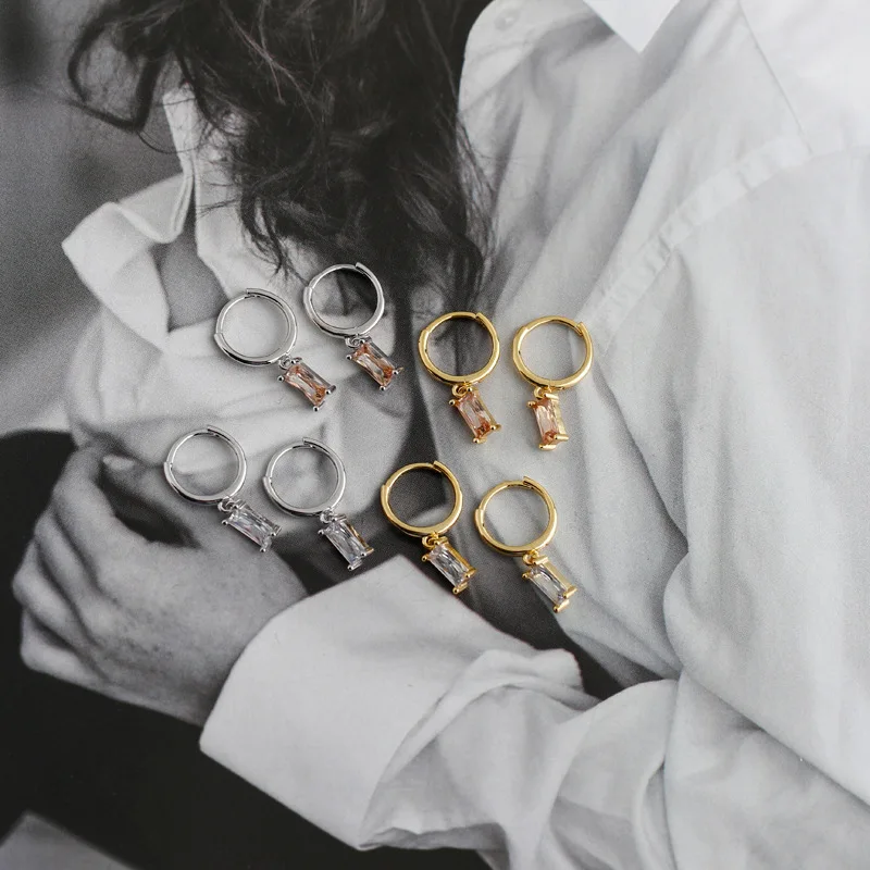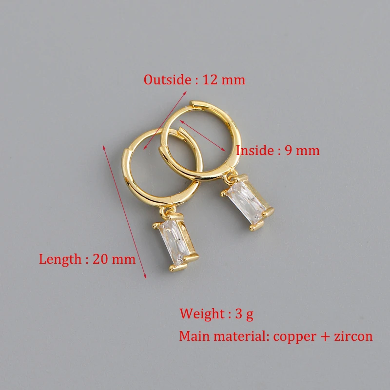 Новые модные тонкие серьги-кольца для женщин, красочные квадратные циркониевые Подвески с камнем, золотойбелый Huggie, модные маленькие пирсинг для уха, кольца