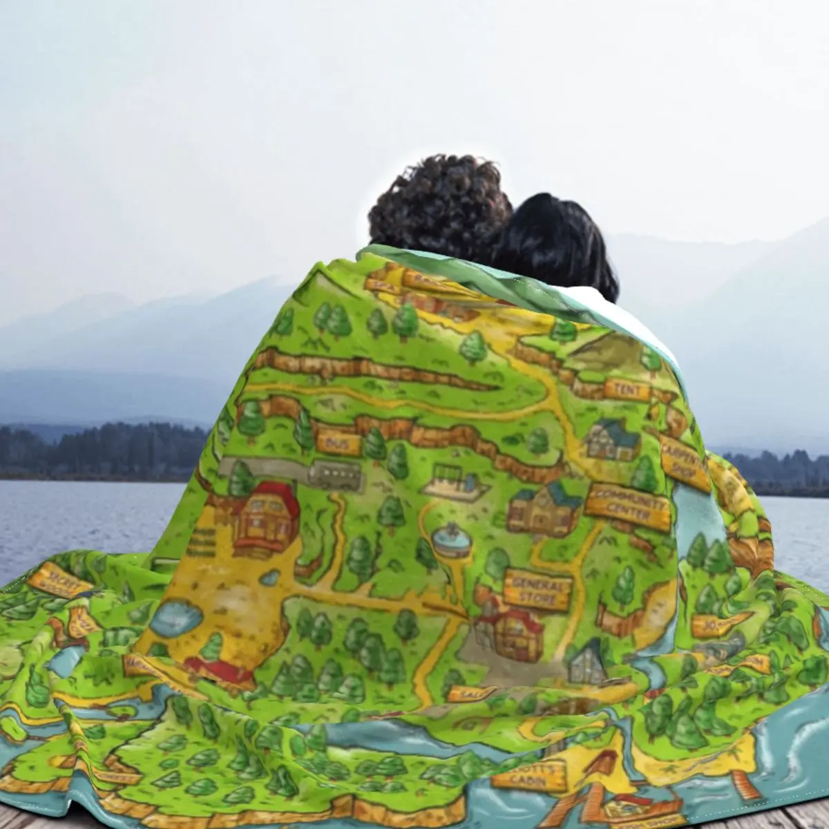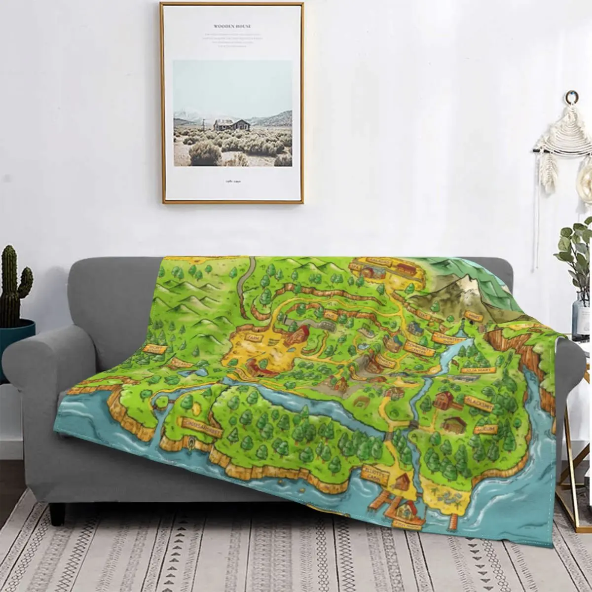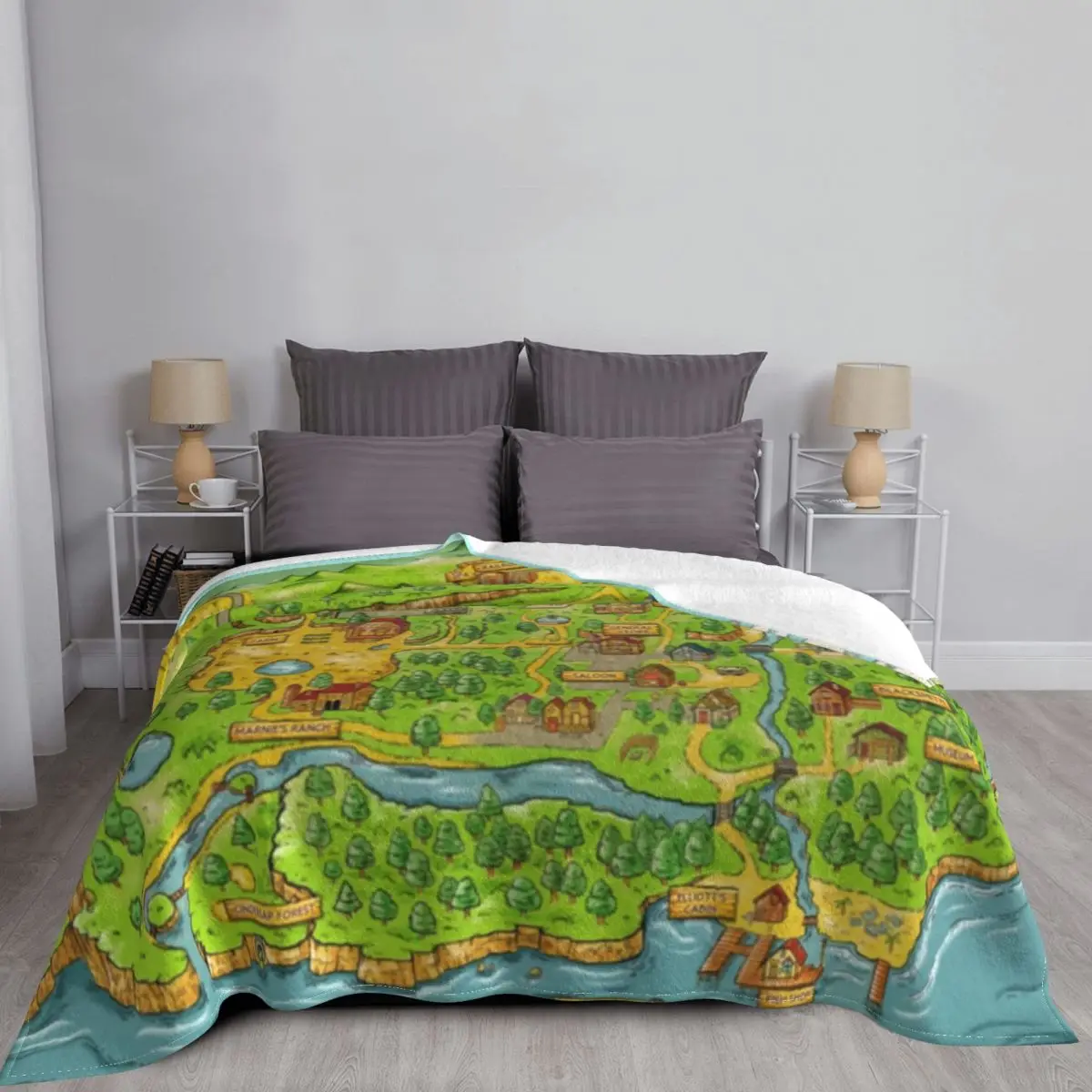 Зимнее теплое покрывало Stardew Valley плед с принтом карты, плюшевое мягкое покрывало, флисовое покрывало, постельное белье для пикника, пушистое искусство