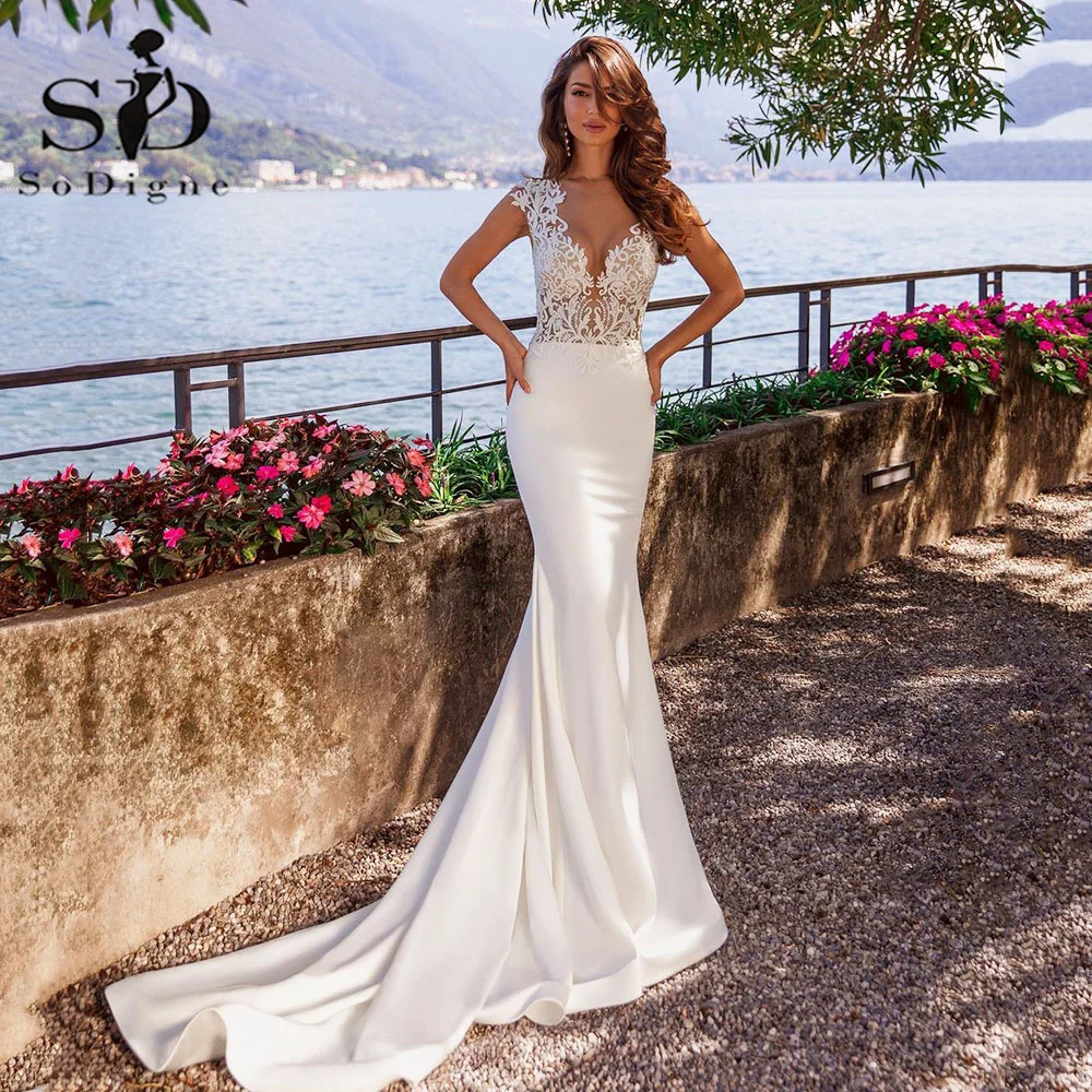 Атласное свадебное платье-Русалка Smileven, пикантное кружевное пля...