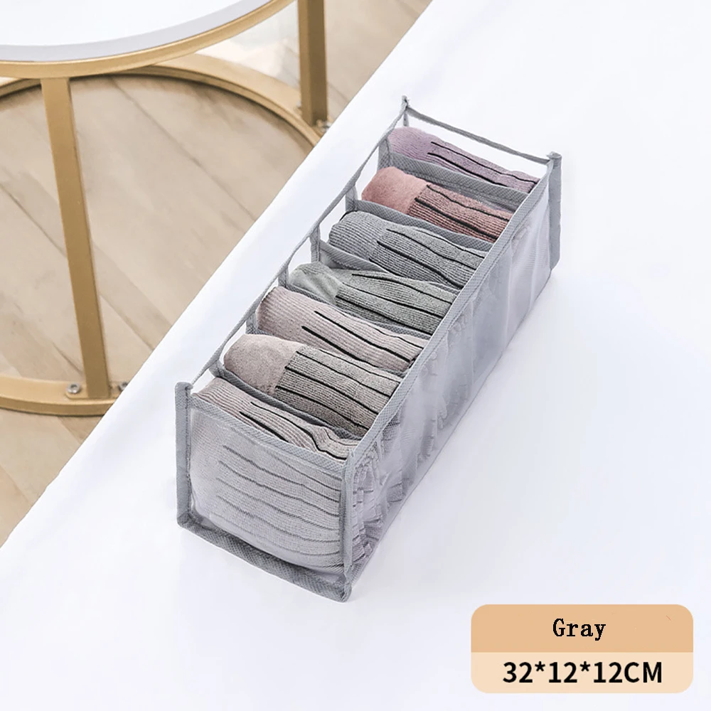 Размер (прибл.): бюстгальтер 6 Размер сетки: 34*31*12 см, Трусы 7 Размер сетки: 32*12*12 см, носки 11 Размер сетки: 32*12*12 см, джинсы 7 Размер сетки: 36*25*20 смЦвет: серый, бежевый