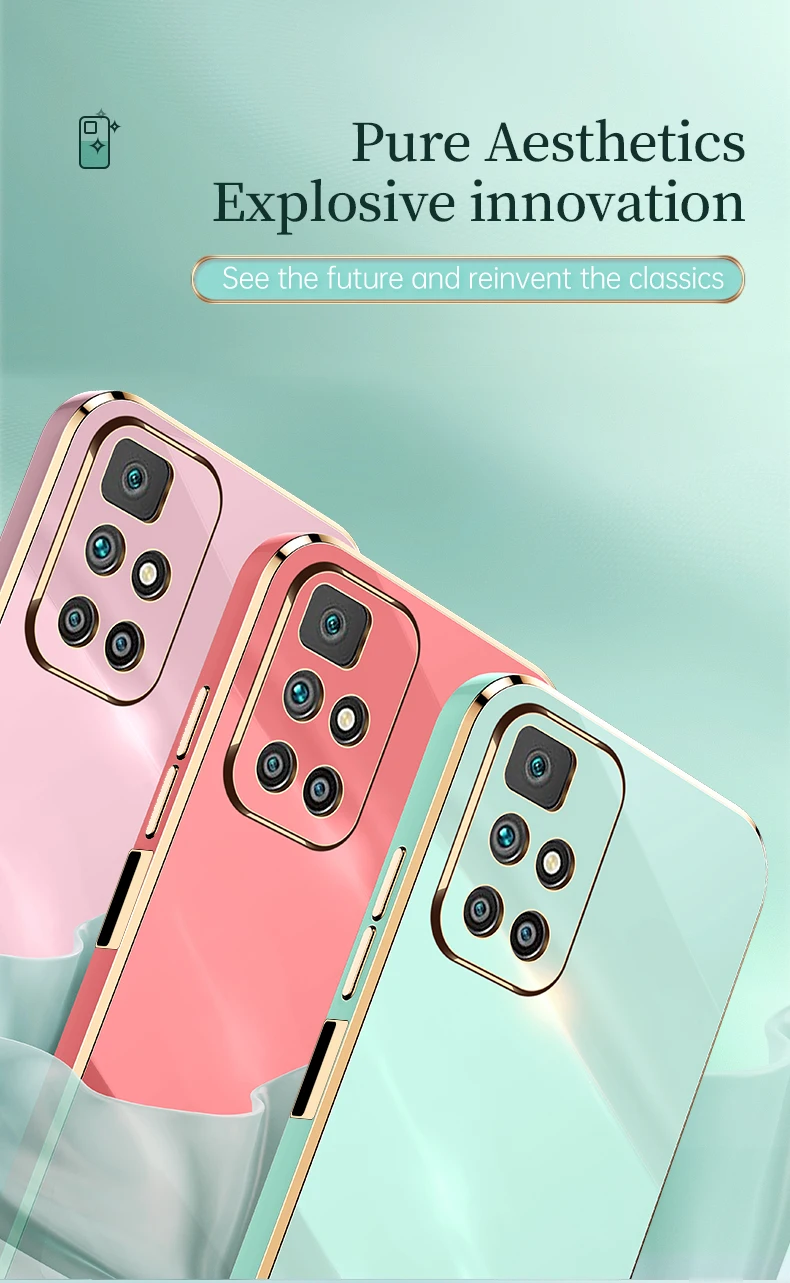 Роскошный Глянцевый квадратный чехол для телефона Xiaomi Redmi 10 R...