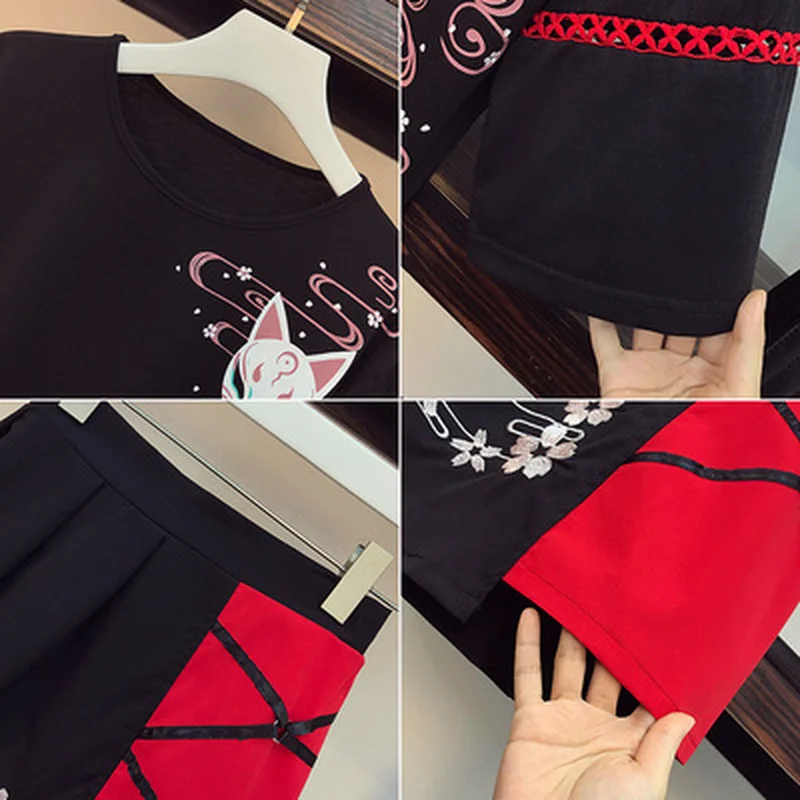 Летняя женская одежда из аниме с красной лентой, футболка в стиле "Лолита", костюм для взрослых, платье ханьфу из лисы, костюмы для косплея