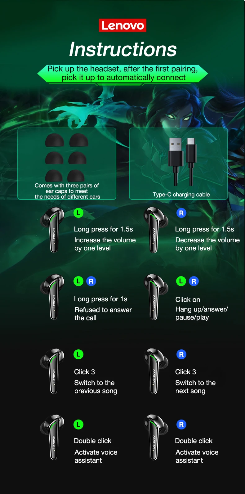 TWS-наушники Lenovo XT92 с поддержкой Bluetooth 5,1 и микрофоном