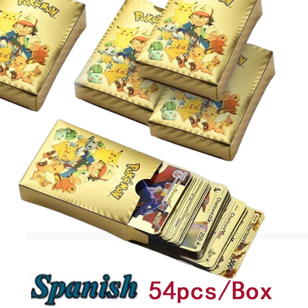 Оригинальные карты Pokemon 27-54 шт., испанские металлические золот...