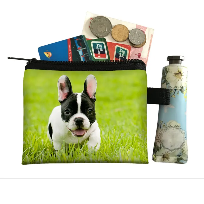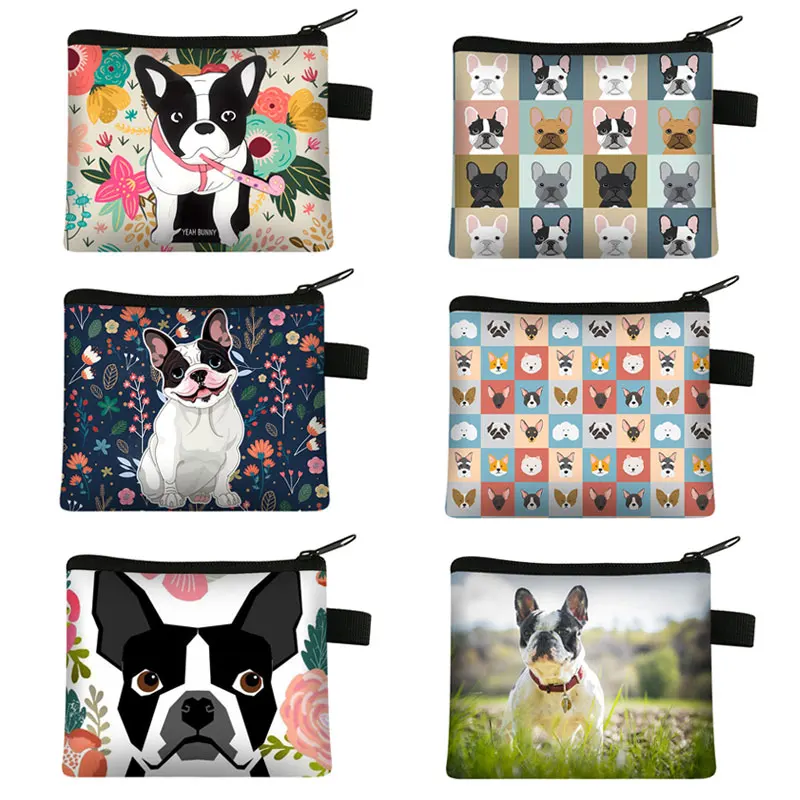 Симпатичный цветочный кошелек с принтом бульдога, женская сумка для отдыха, мужской кошелек, сумка для мелочи с бульдогом, щенком, маленький клатч, Детский кошелек для денег