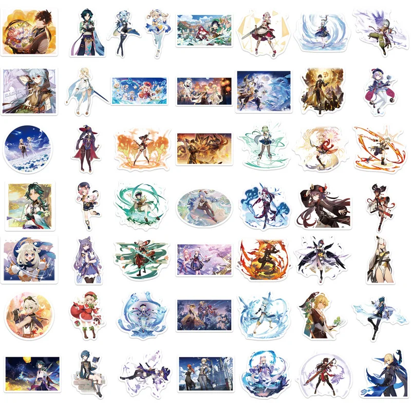50 шт. аниме геншин ударная игра граффити наклейки мультфильм водон...