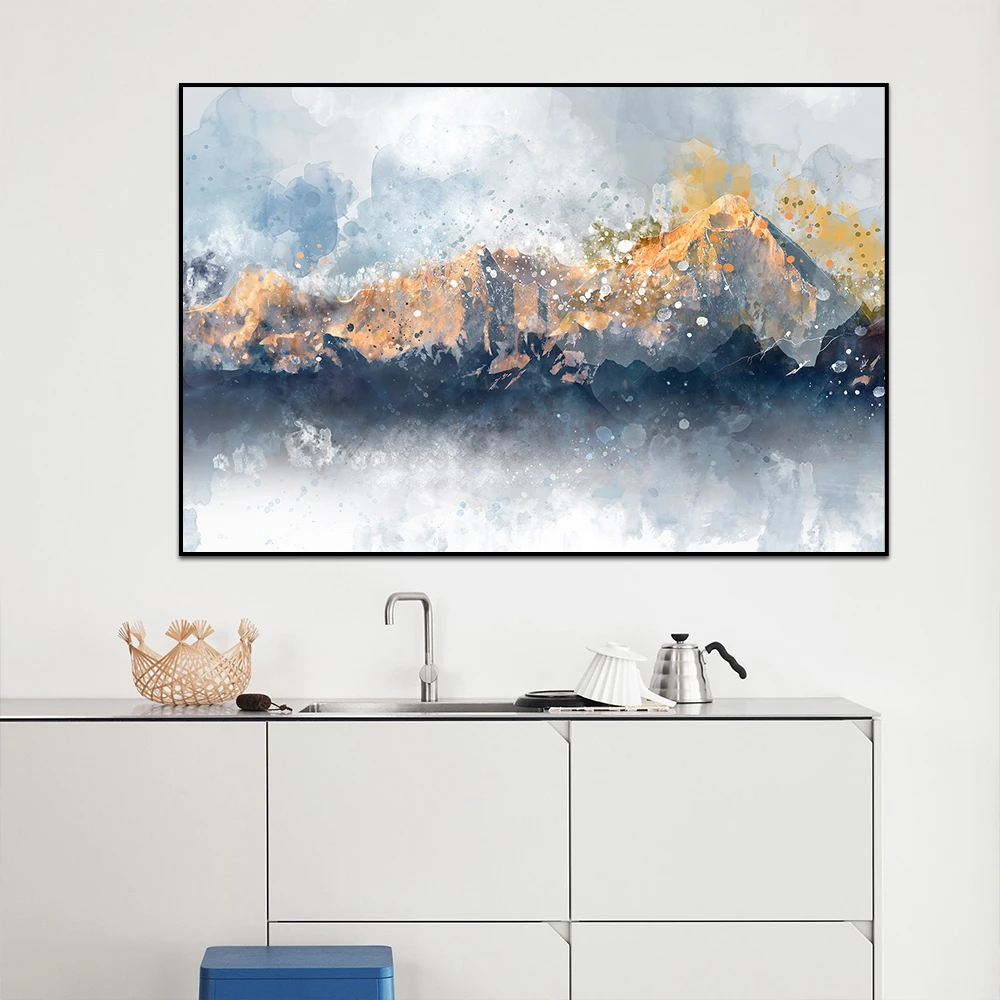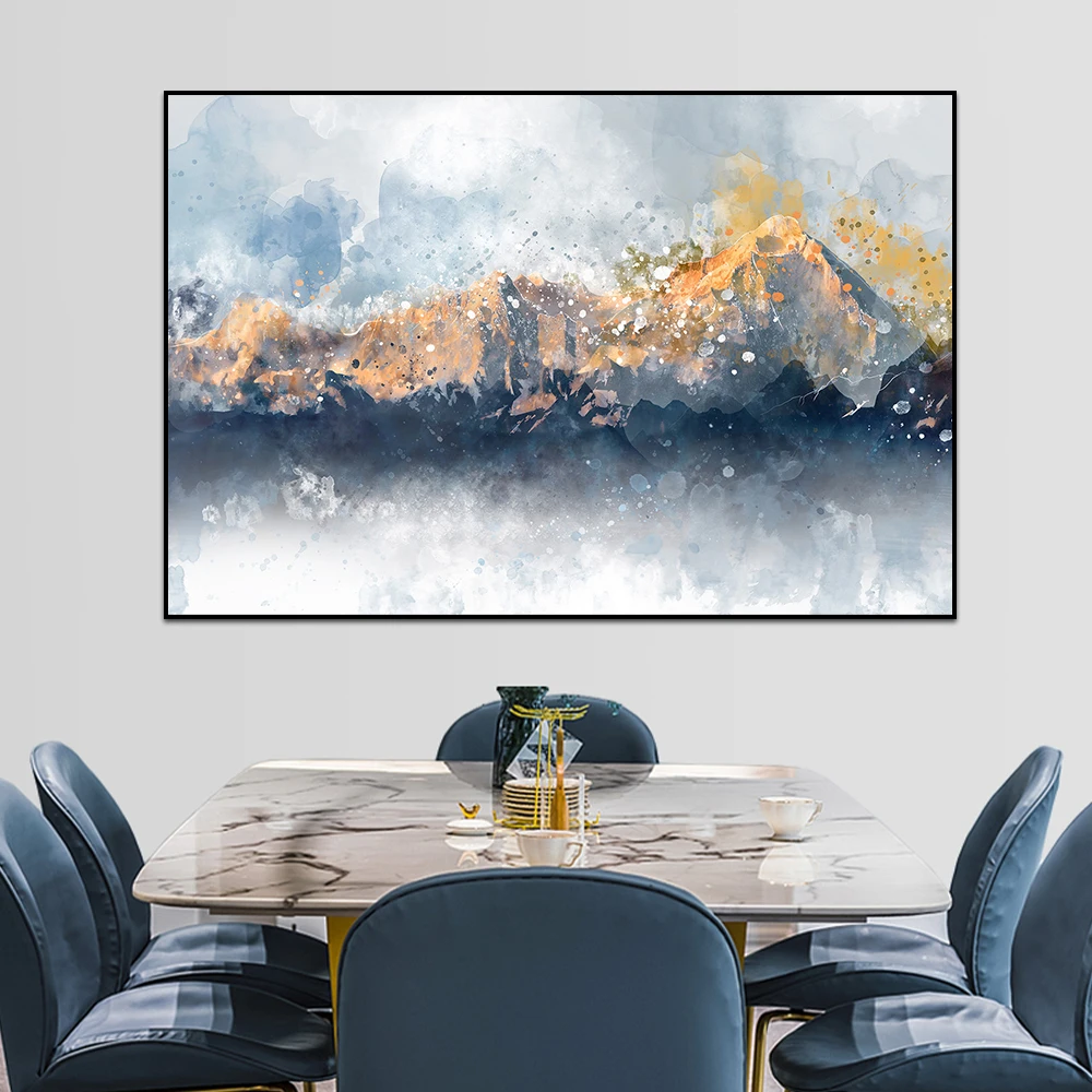 Современные абстрактные пейзажи золотые горы большой размер художественная картина маслом на холсте постеры и печать Настенная картина украшение для дома