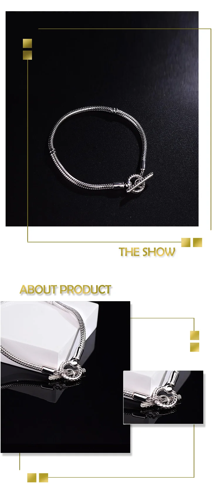 Женский браслет из серебра 925 пробы, с Т-образным сердцем и змеино...