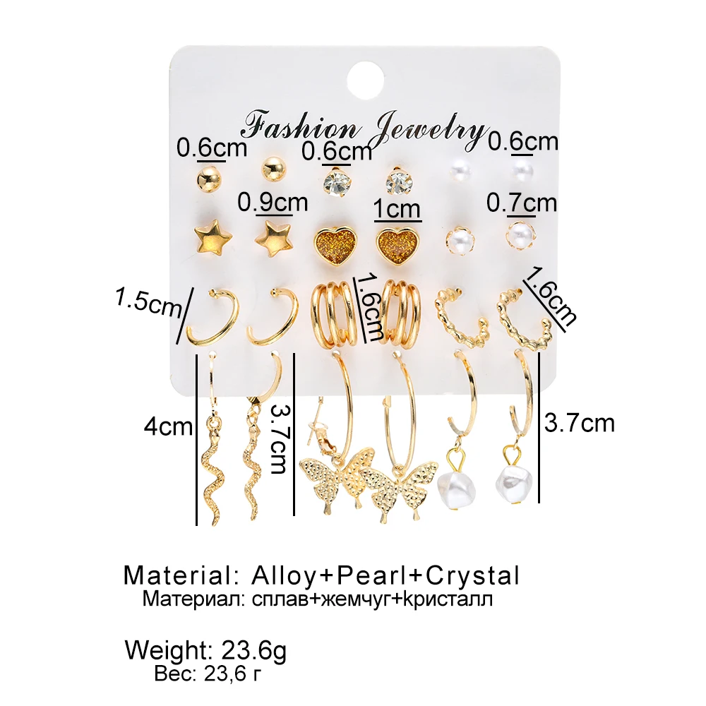 EN 2022 тренд, 12 шт.компл., серьги-гвоздики с животными в виде змеиной бабочки для женщин и девочек, амулет, сердечко любви, звезда, металлические жемчужные серьги, ювелирные изделия
