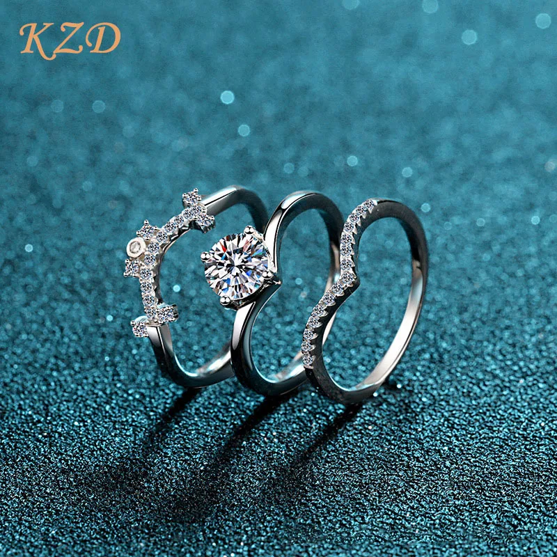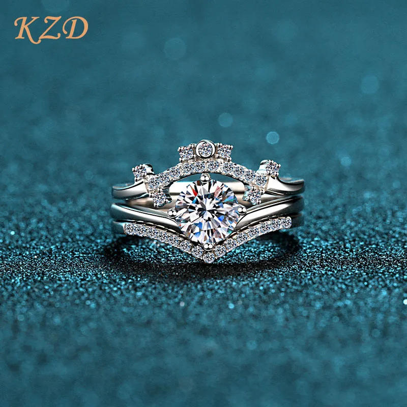 Женская мода S925 из стерлингового серебра с инкрустацией с четырьмя когтями, 80 очков, Муассан, алмазная корона, трехуровневое кольцо, подарок для подруги