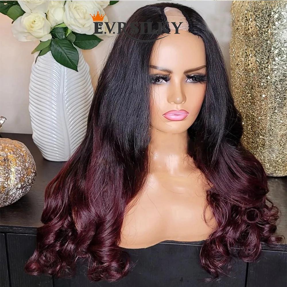 Объемные волнистые парики, волнистые, бордовые, винные, без клея, u-образные человеческие волосы, u-образный парик, 30 дюймов, 99j, Малайзия, свободные, волнистые, полные, машинные, сделанные парики