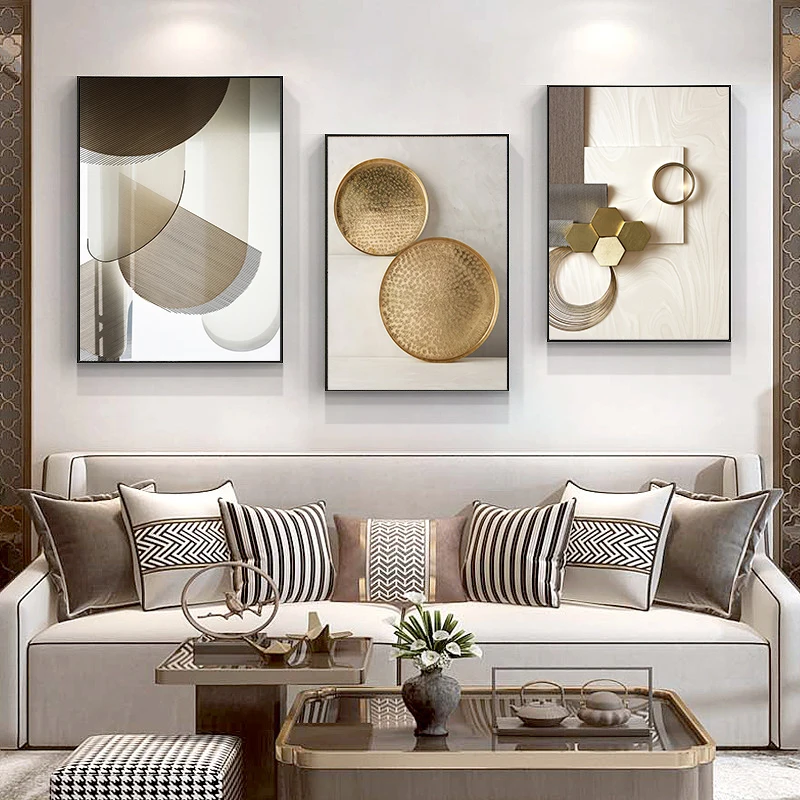 Золотые геометрические абстрактные настенные плакаты, современные скандинавские картины, минималистичные картины на холсте, домашний декор