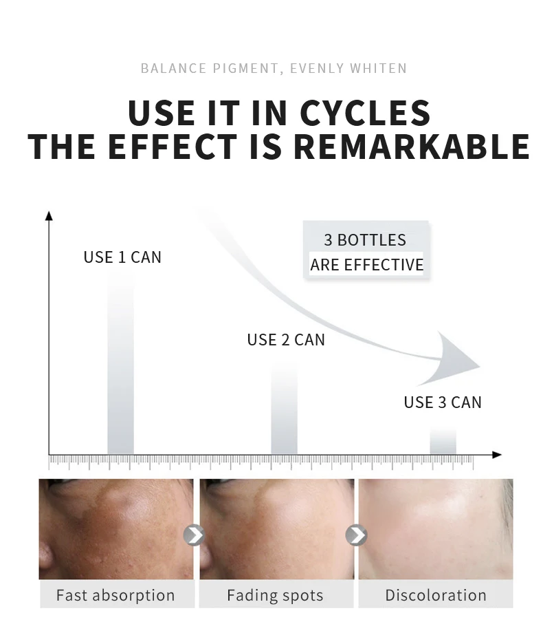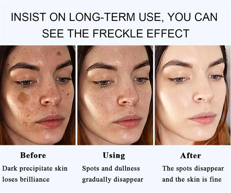 Этот продукт изготовлен из натуральной биологической эссенции, извлекаемой из высокотехнологичных, с коротким отбеливание веснушек, удаление акне особенно сильный эффект длительного использования может регулировать регенерацию и Ремонт клеток кожи, устранение стимулов для производства меланина, эффективная профилактика регенерации различных типов пятен, достижение гладкой и нежной кожи, Эффективность мягкого отбеливания.
