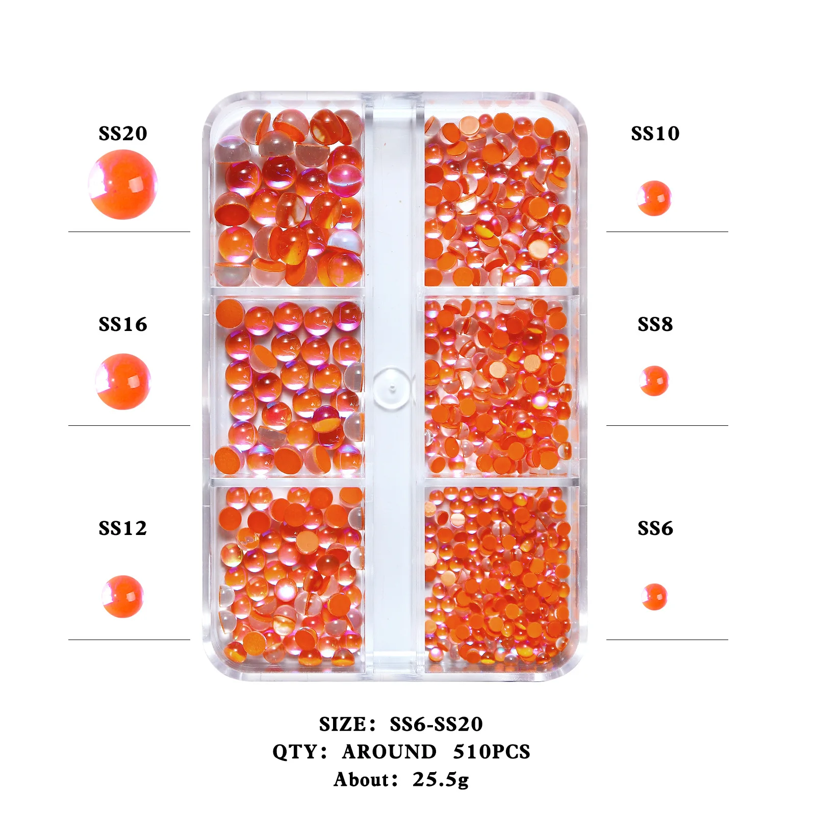 Набор полукруглых стразы 500 шт.корт. 6 ячеек стразы с плоской задней стороной алмазные стразы для ногтей хрустальные бусины для творчества украшения для дизайна ногтей