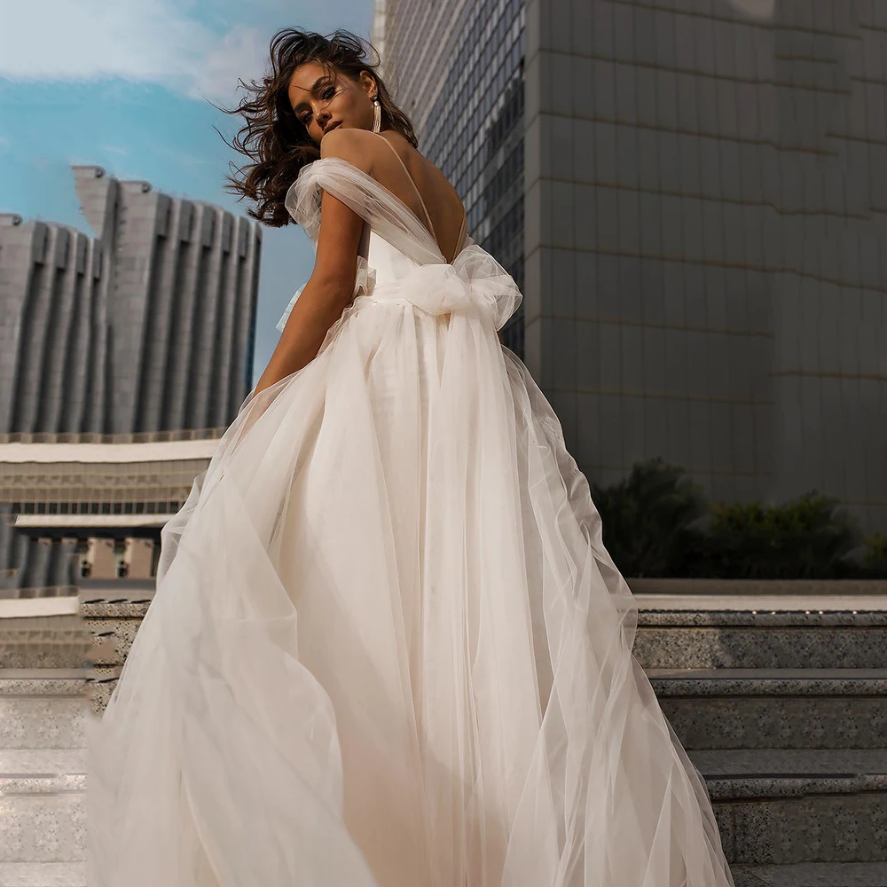 UZN шикарные свадебные платья принцессы цвета слоновой кости атласные и тюлевые Свадебные платья с открытыми плечами и лямками для сердечек элегантные платья с бантом для невесты