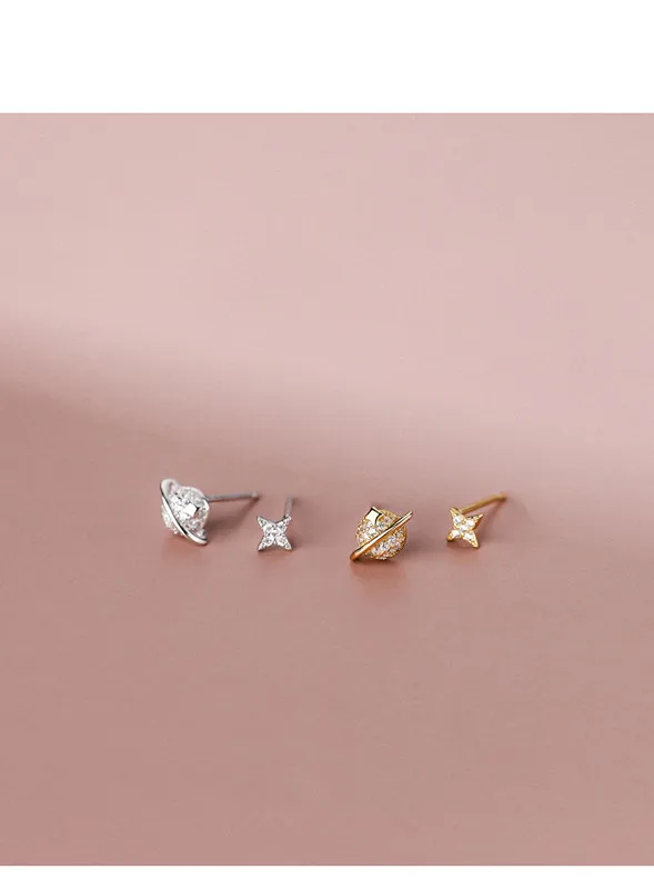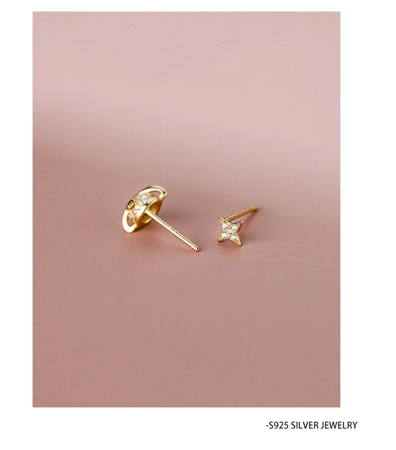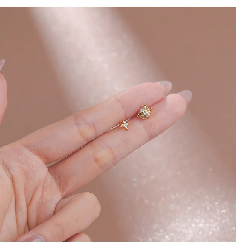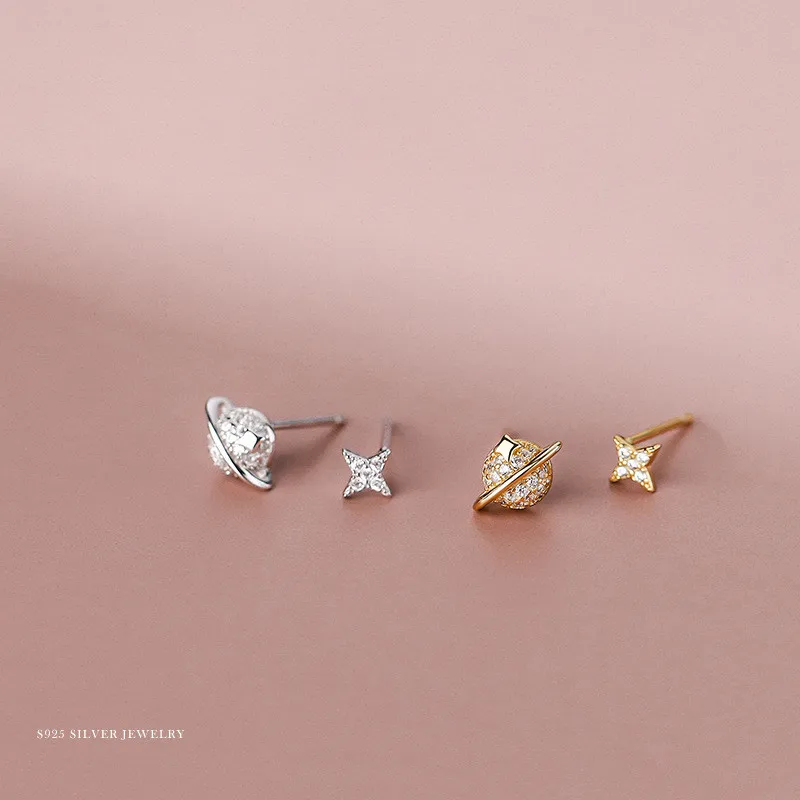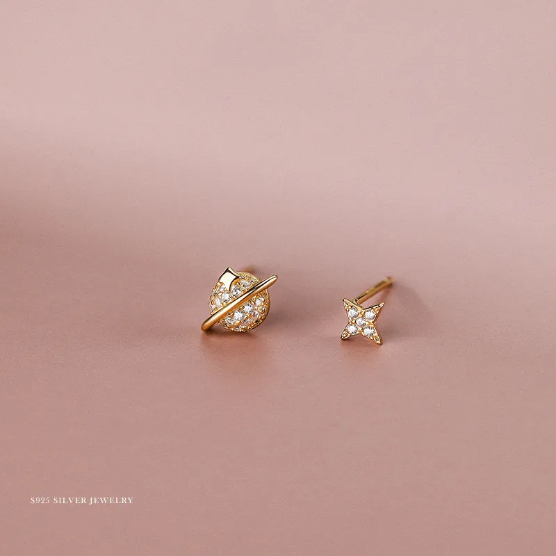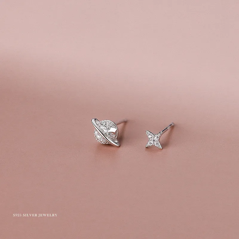 Женские серьги из серебра 925 пробы с Планетным паве из циркония, простые изысканные компактные асимметричные серьги в Корейском стиле, ювелирные украшения для ушей