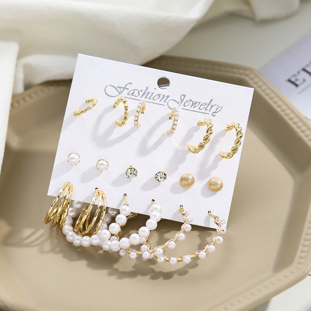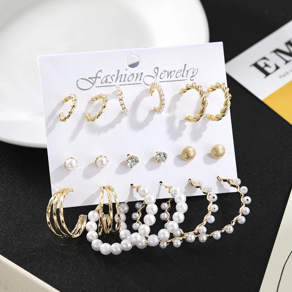 New DesignEN Fashion Pearl Hoop Earrings Set For Women
